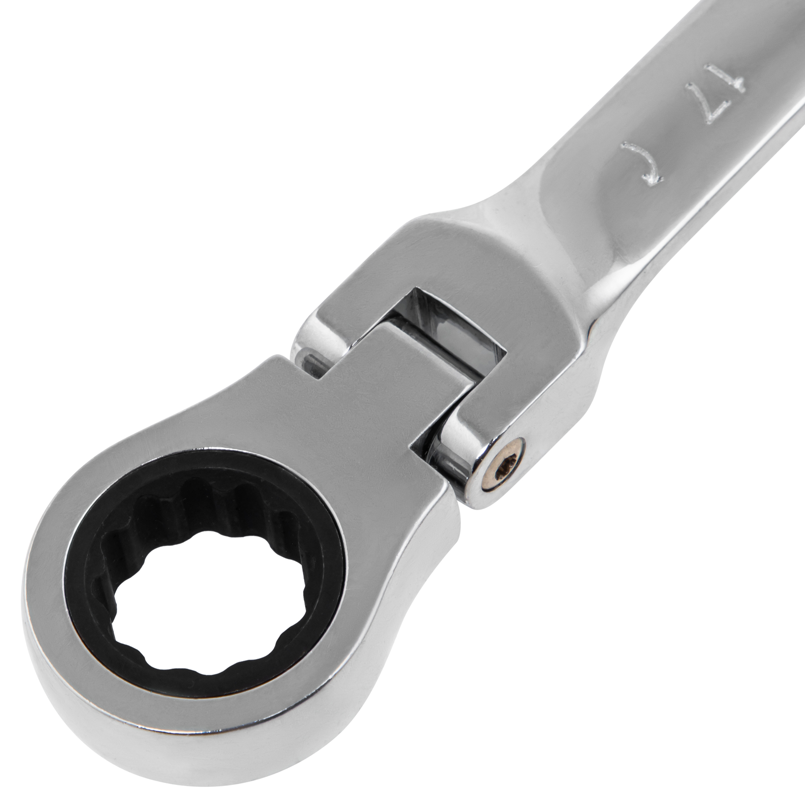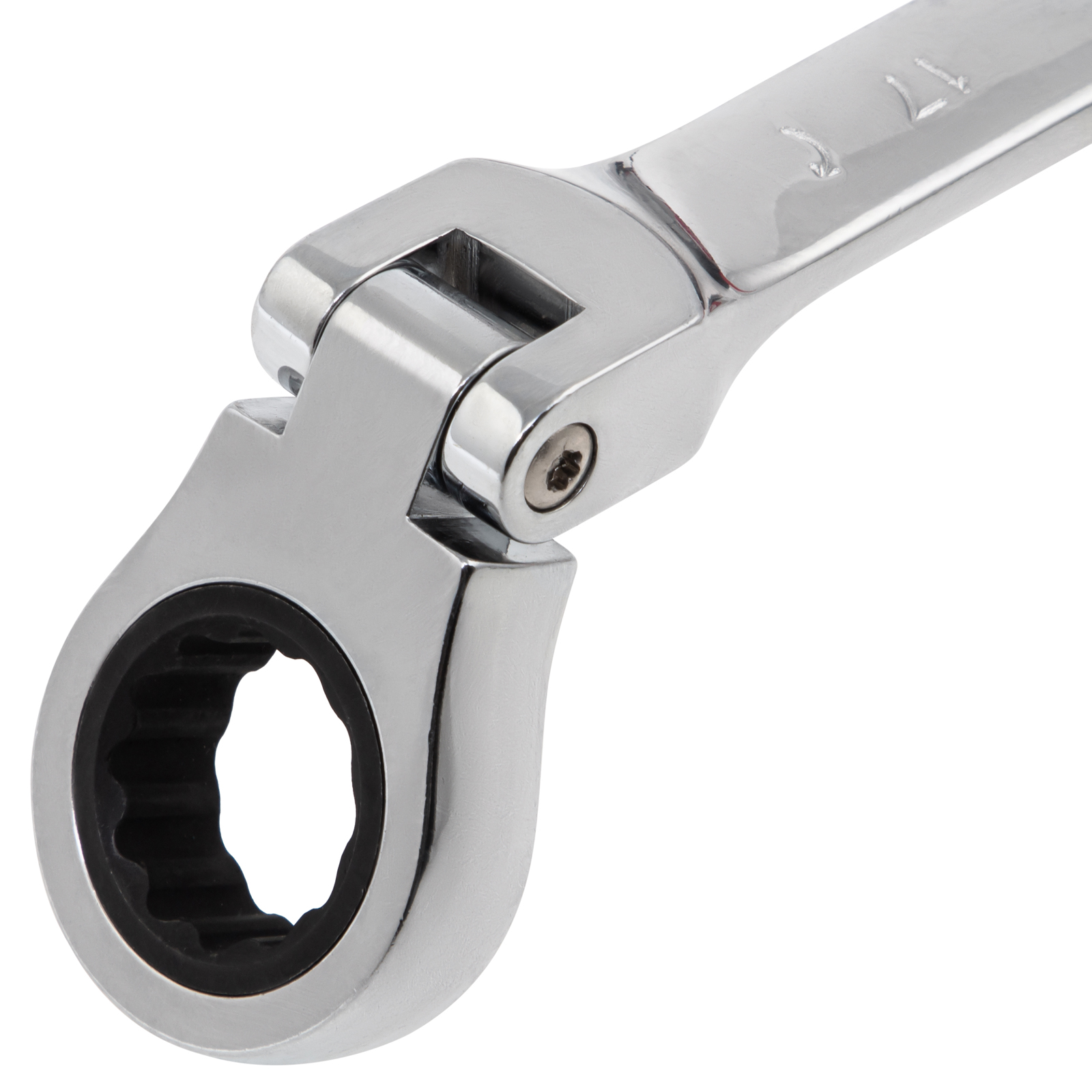 - Удобная работа в труднодоступных местах — храповой механизм на 72 зуба обеспечивает плавное вращение (шаг трещотки составляет 5°), а шарнир позволяет поворачивать рабочую часть под углом.