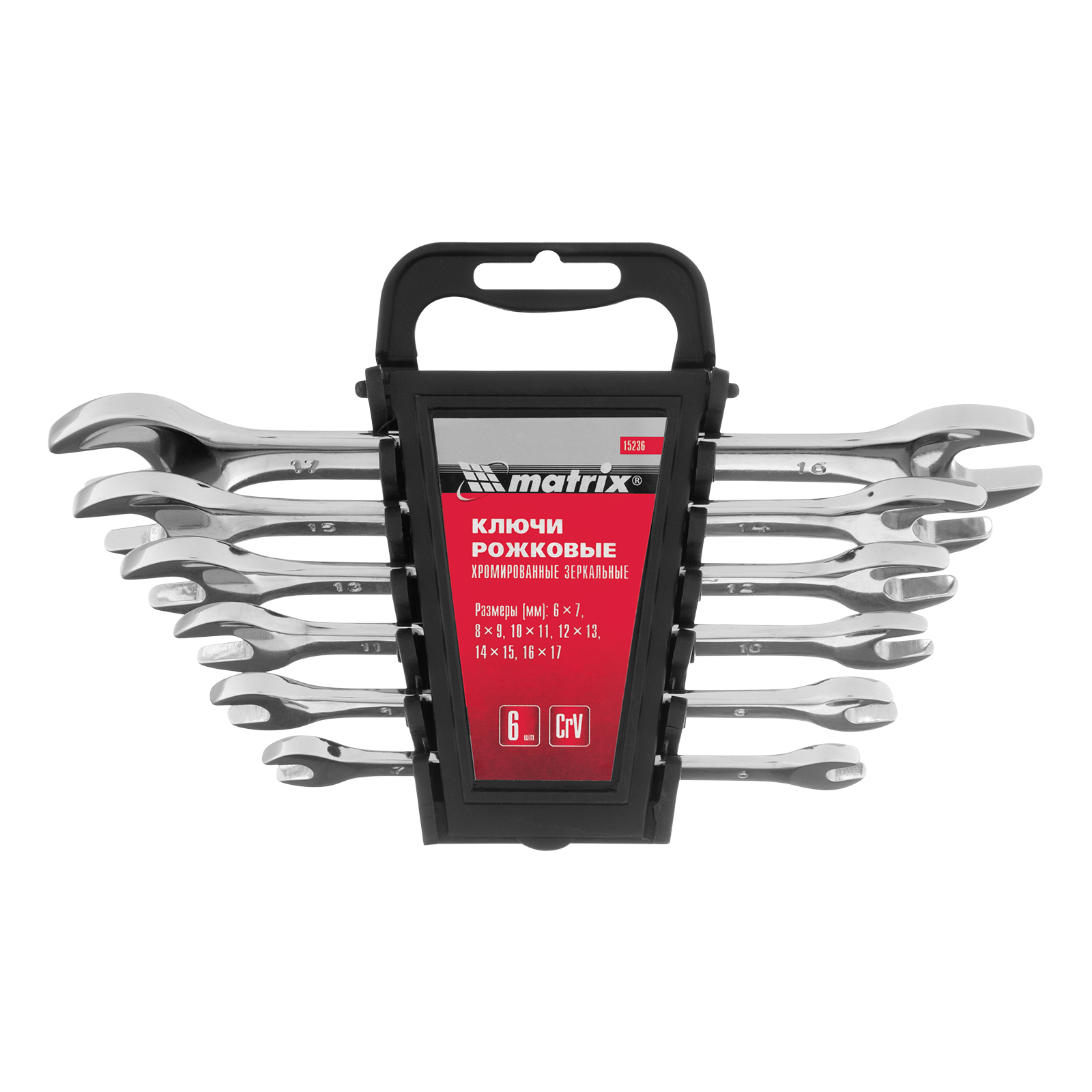 Набор ключей рожковых 6 шт, 6-17 мм, CrV, Elliptical, зеркальное хромирование Matrix в Москве