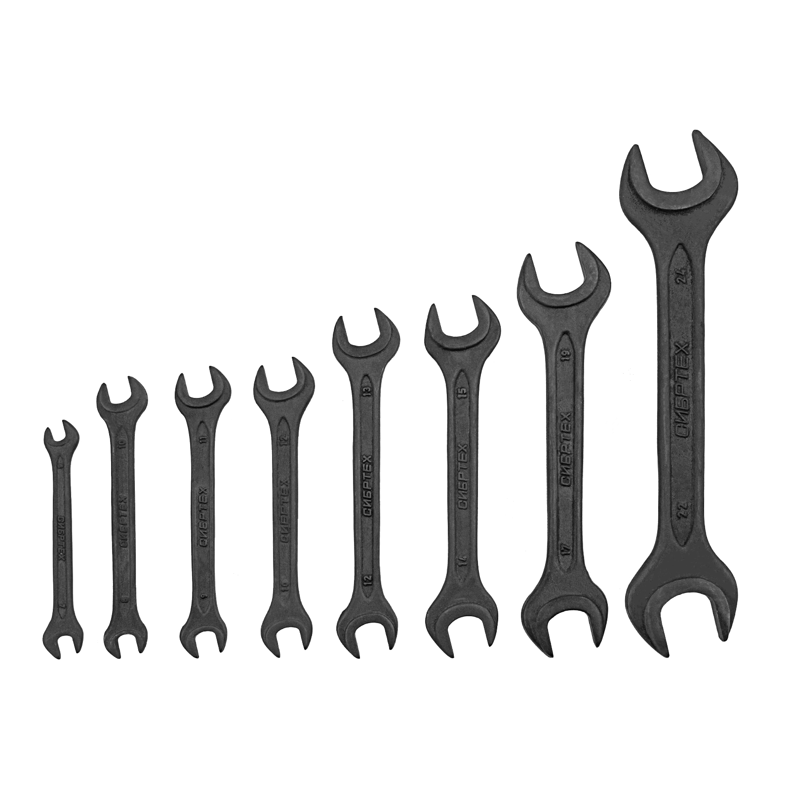 Набор ключей рожковых, 6 - 24 мм, 8 шт., CrV, фосфатированные Сибртех в Москве