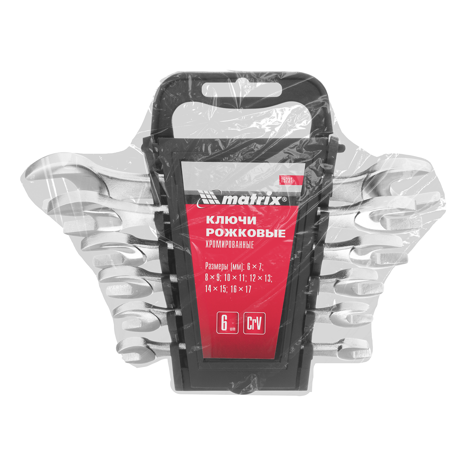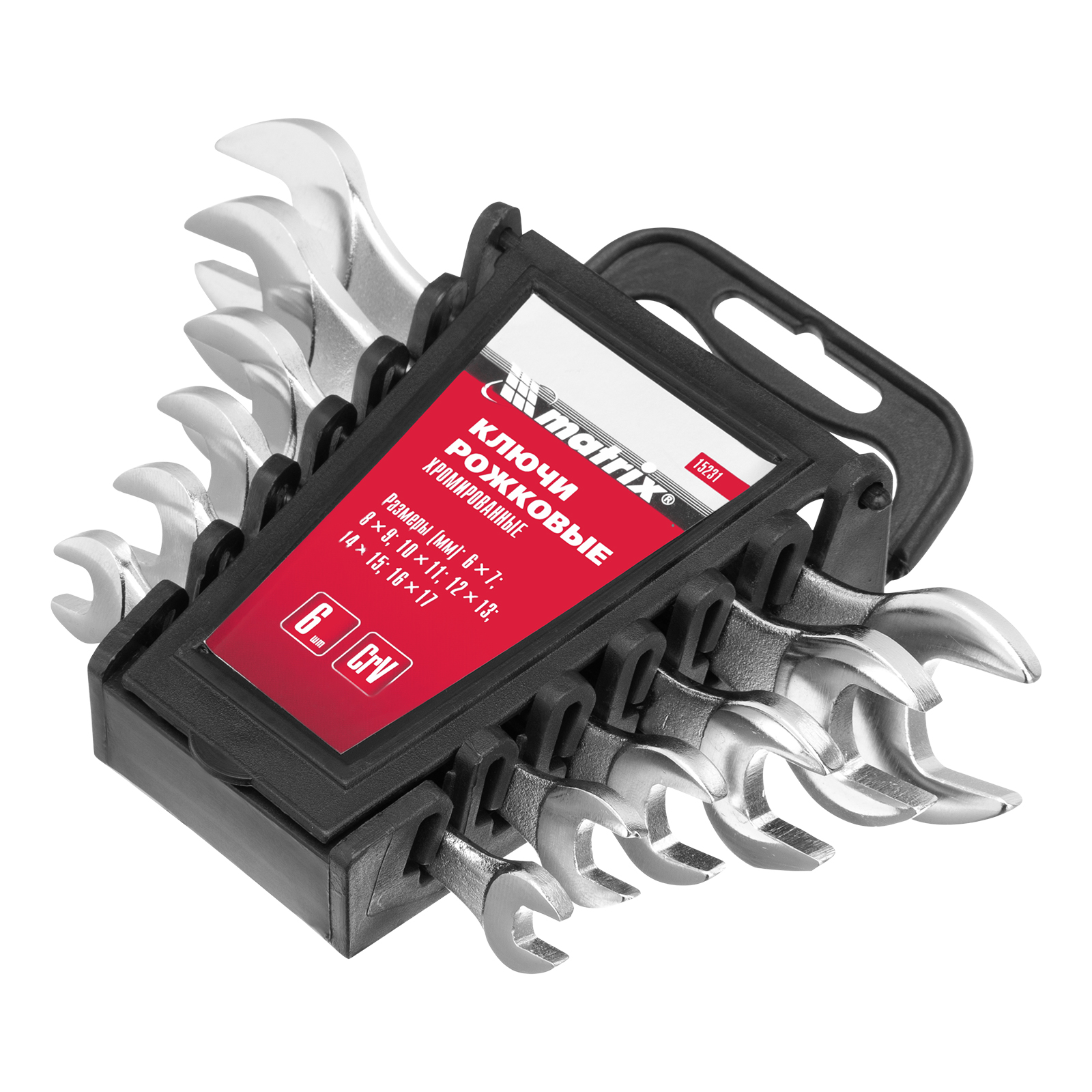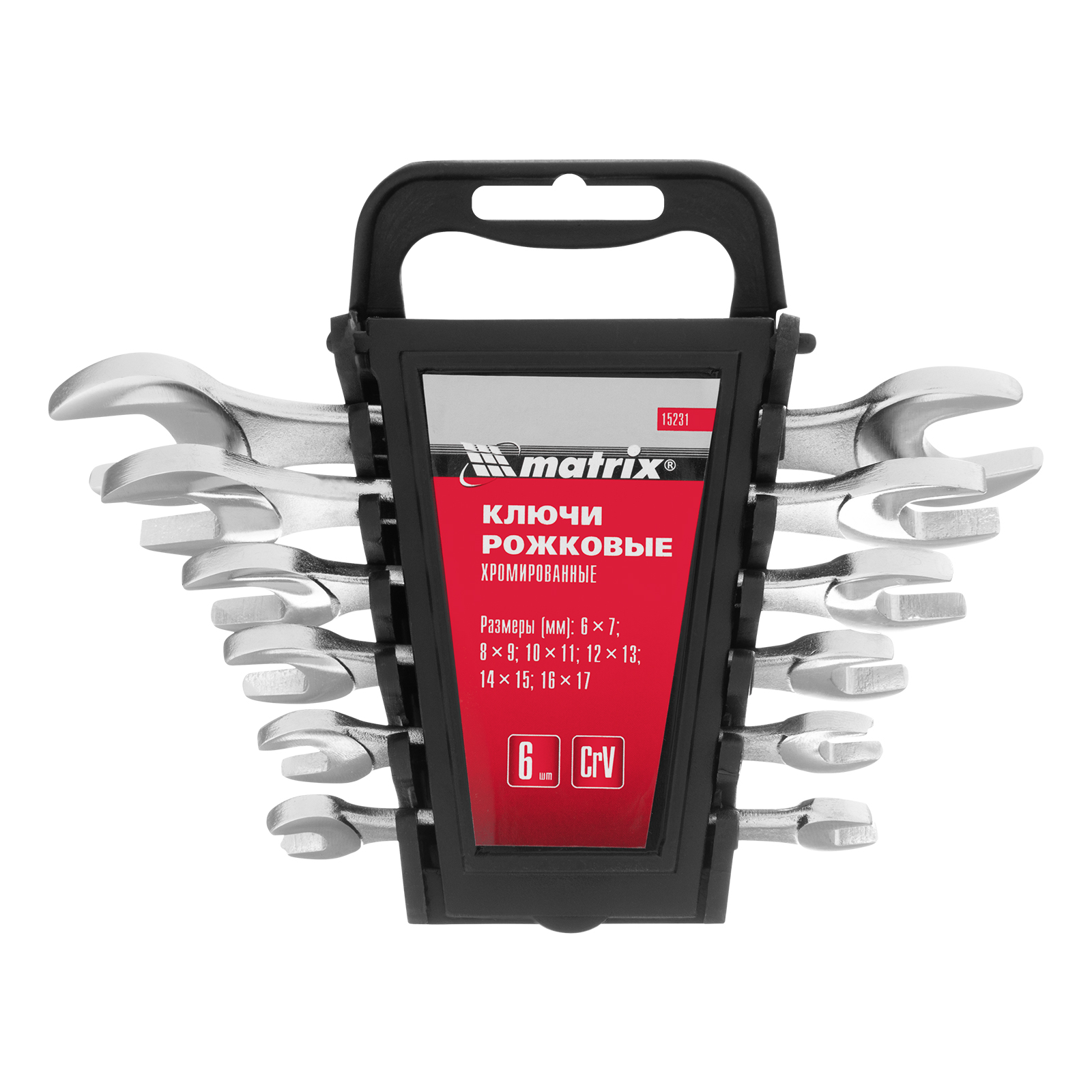 Набор ключей рожковых, 6-17 мм, 6 шт, CrV, хромированные Matrix в Москве