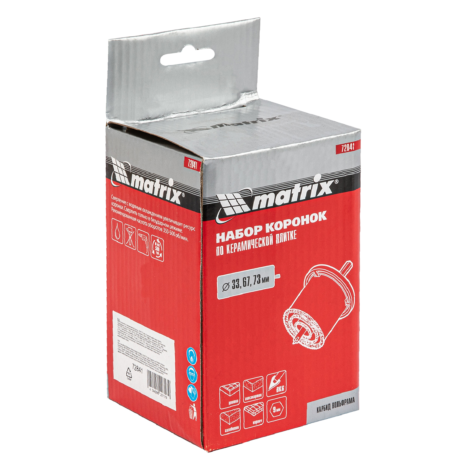 Набор коронок по керамической плитке, 33-67-73 мм, шестигранный хвостовик Matrix в Москве
