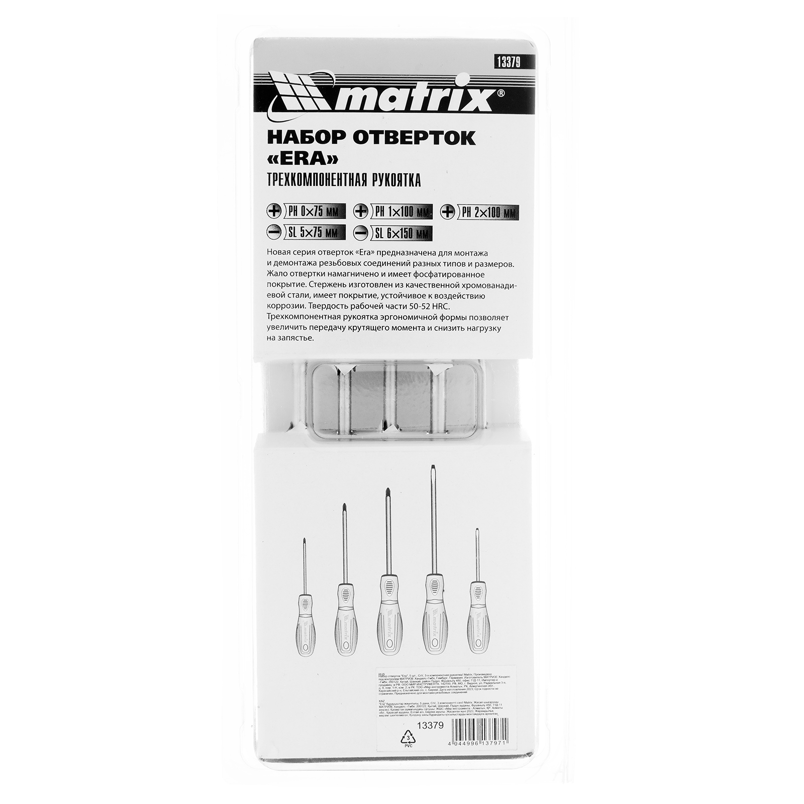 Набор отверток "Era", 5 шт, CrV, трехкомпонентная рукоятка Matrix в Москве