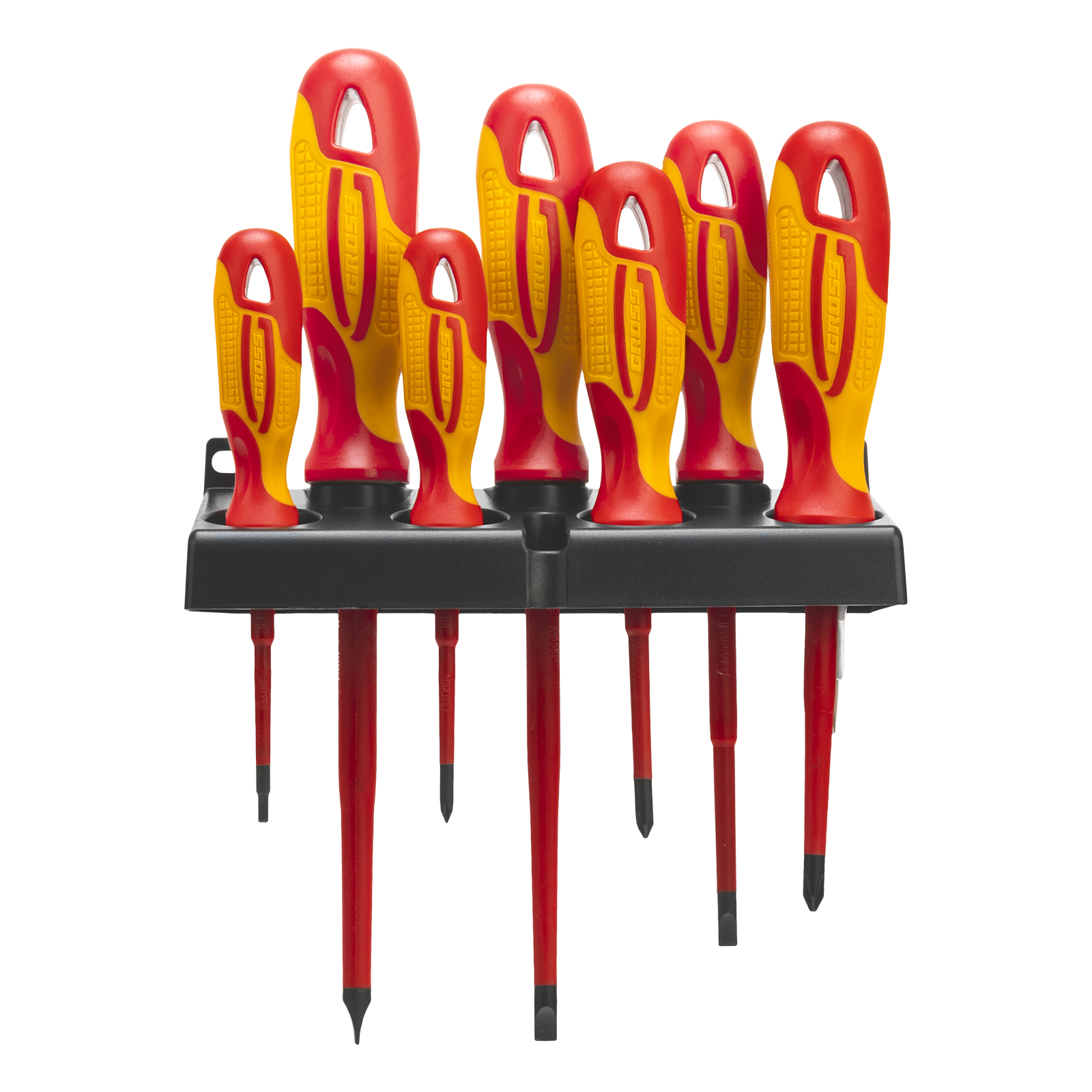 Набор отверток диэлектрических до 1000 В, 8 шт, тестер, CrMo, двухкомпонентные рукоятки Gross в Москве
