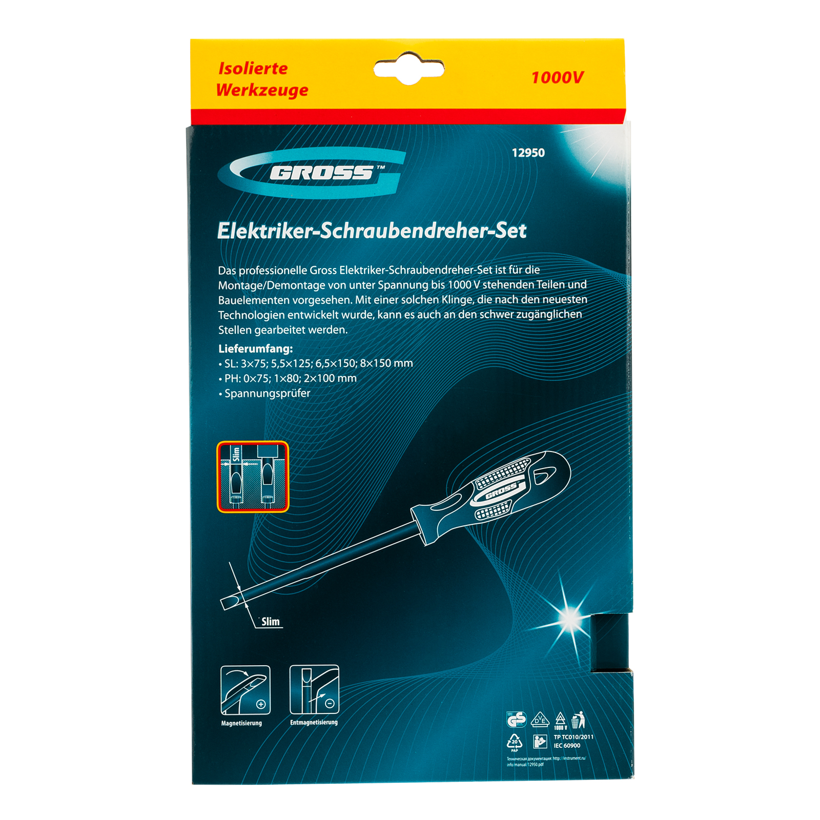 - Сертификаты VDE и GS подтверждают качество и безопасность отверток.