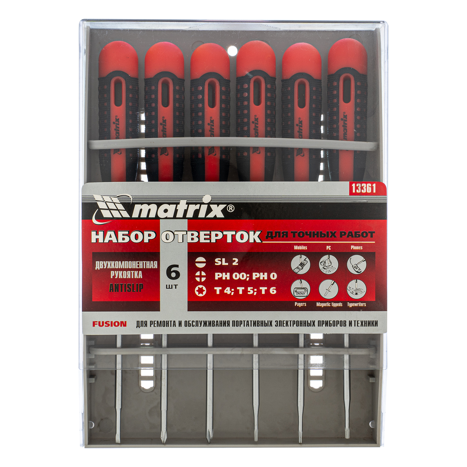 Набор отверток для точных работ Fusion, двухкомпонентная рукоятка, 6 шт, в пластиковом пенале Matrix в Москве