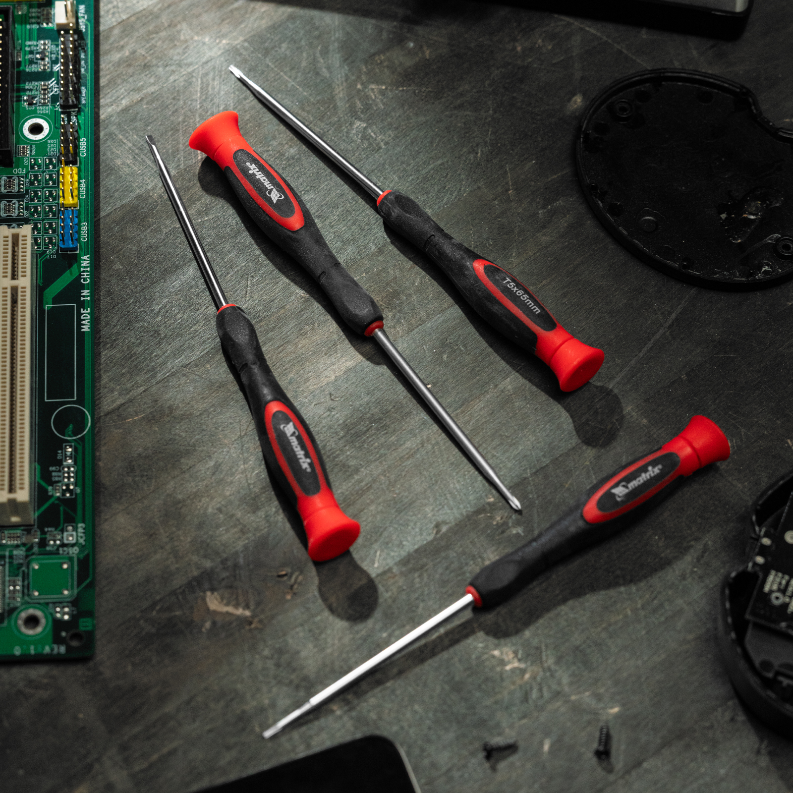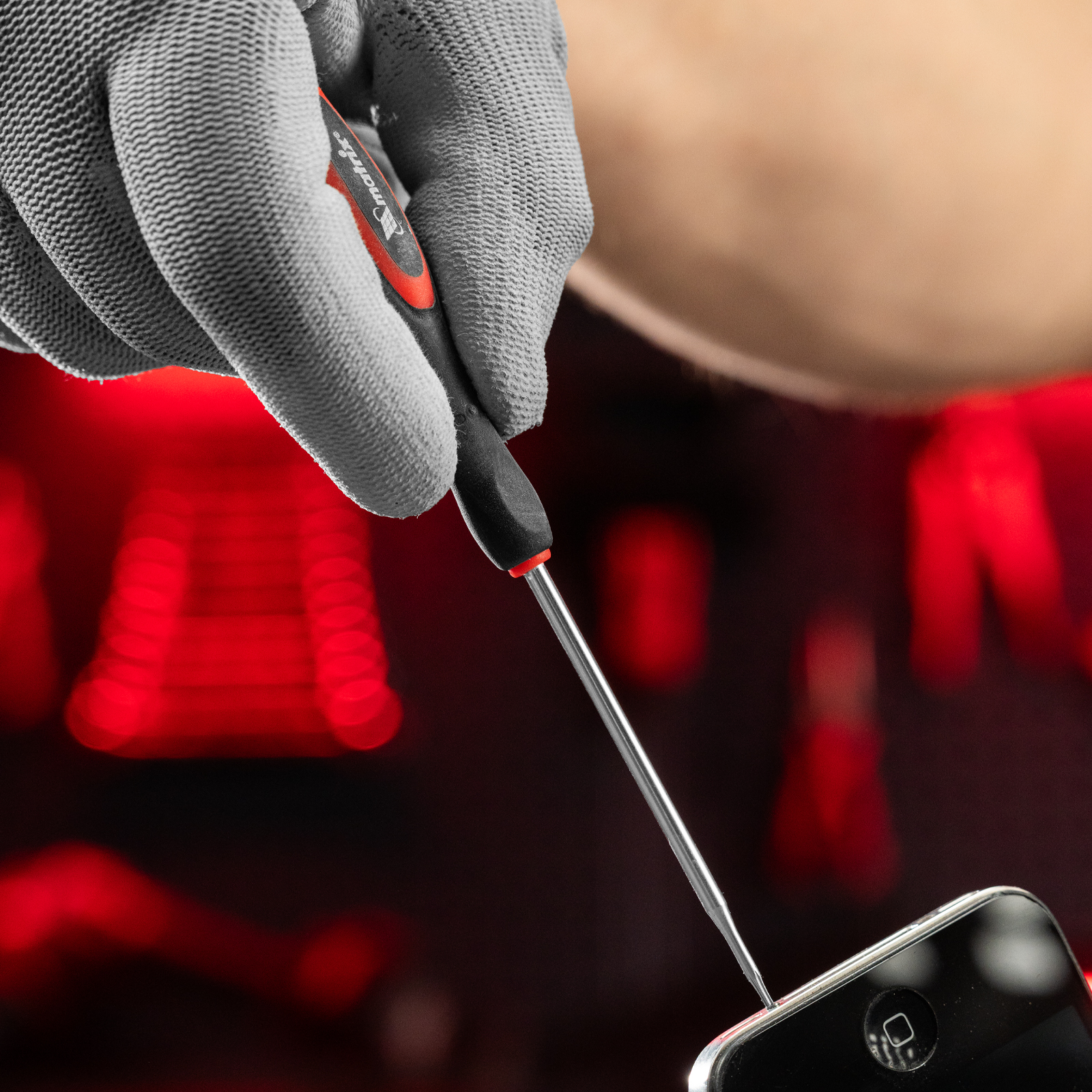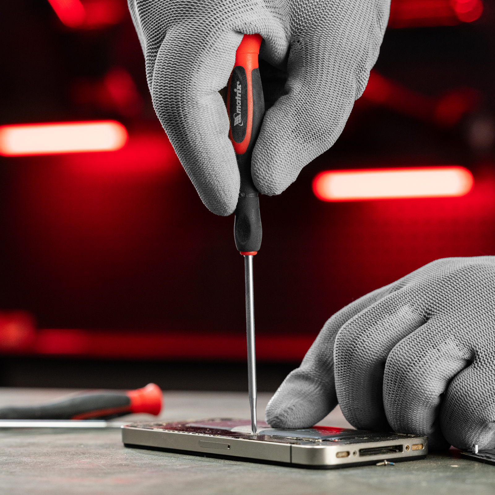 Набор отверток Matrix 11589 включает в себя 8 специализированных инструментов из стали CrV, предназначенных для точных работ с мобильными телефонами. Состоит из отверток под шлицы PH, SL и Torx. У каждой отвертки с тыльной стороны имеется вращающийся затыльник с площадкой под палец, упрощающий вращение инструмента. Набор пригодится мастерам по ремонту портативной электроники.