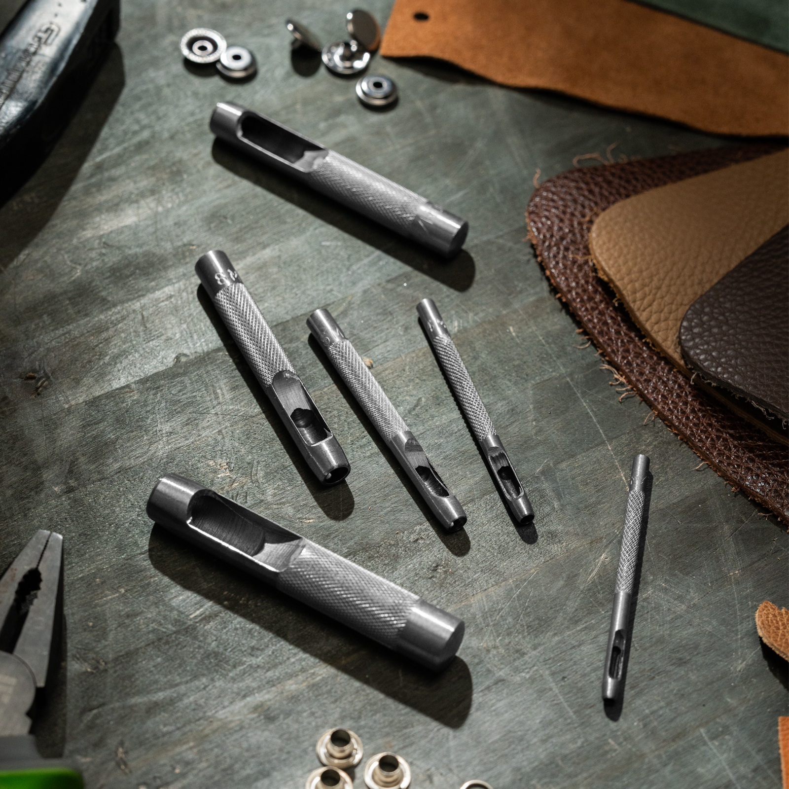 - Все пробойники в комплекте имеют рельефную рукоятку для надежного захвата и комфортной работы.
