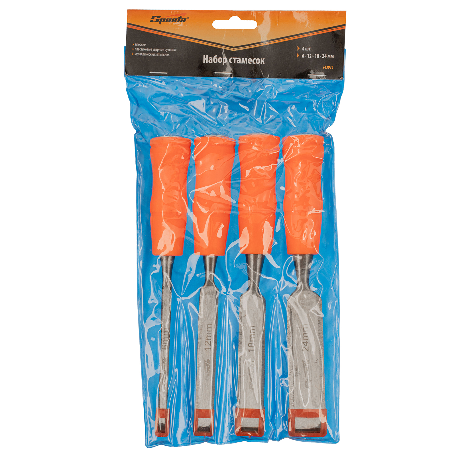 Набор стамесок 4 шт, 6-12-18-24 мм, плоские, пластиковые ударные рукоятки Sparta в Москве