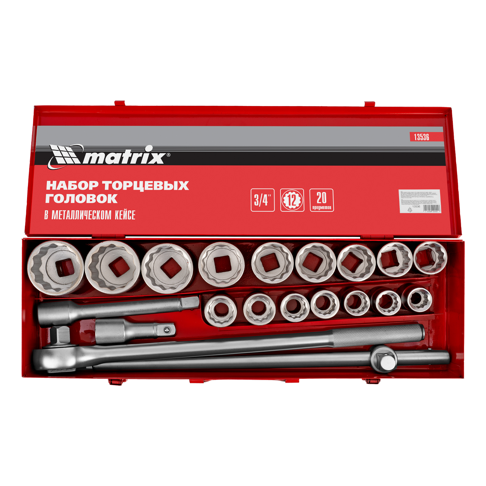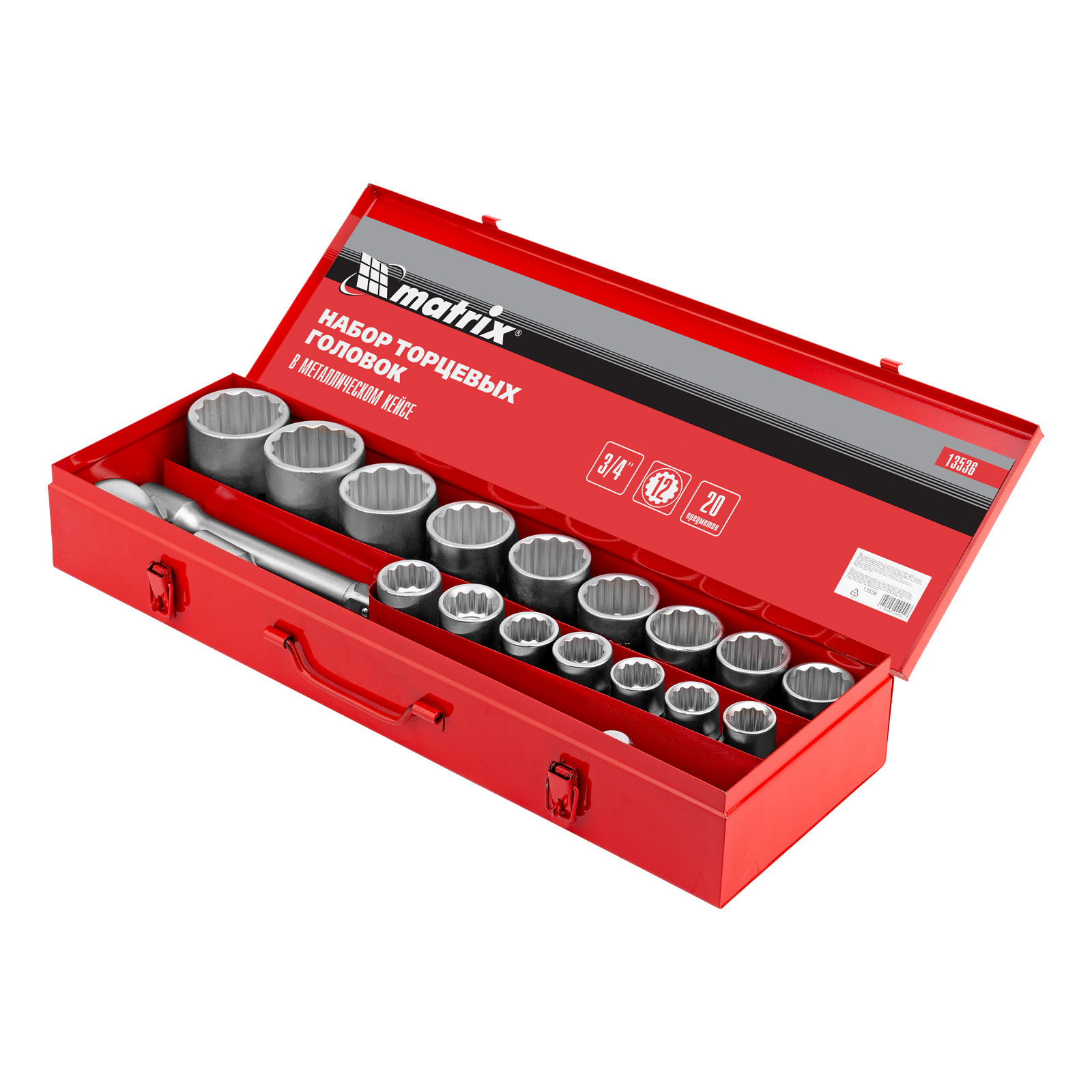Набор торцевых головок 3/4", головки 19 х 50 мм, 20 предметов, в метал. боксе Matrix в Москве
