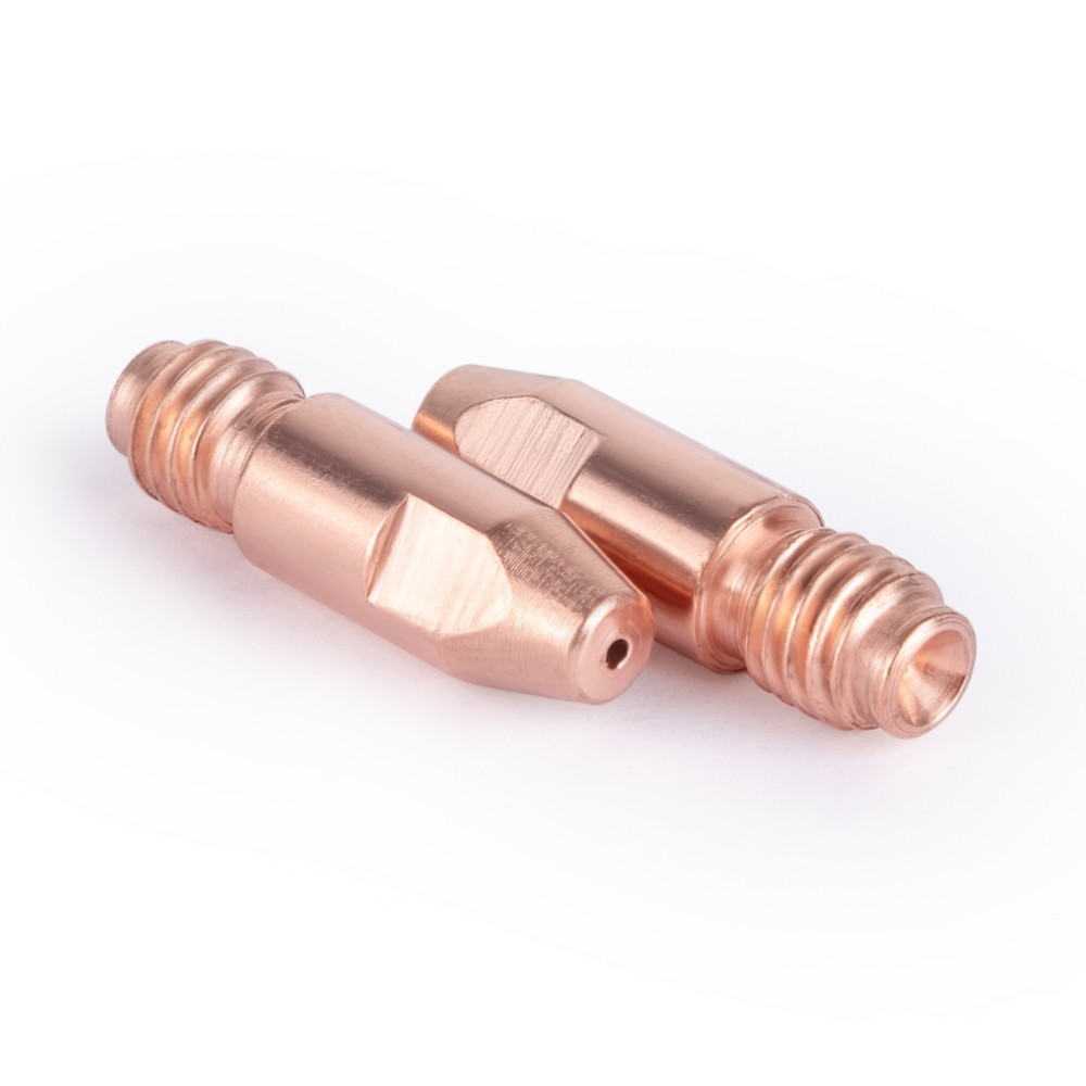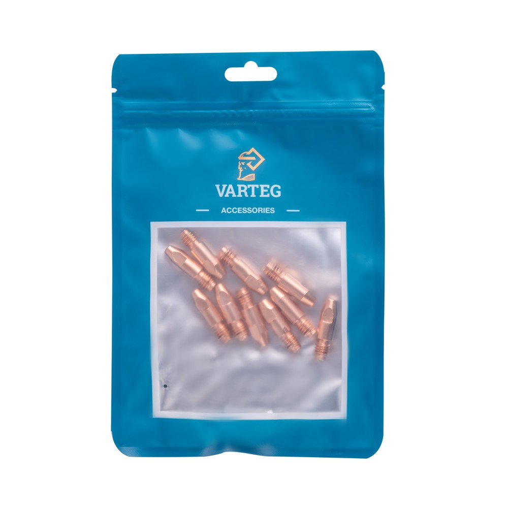 Наконечник VARTEG предназначен для полуавтоматических горелок. Применяется для точной подачи сварочной проволоки и для формирования качественной сварочной дуги. Наконечник крепится на горелке при помощи резьбы М8. Изготовлен из меди, что обеспечивает надежность и долговечность использования