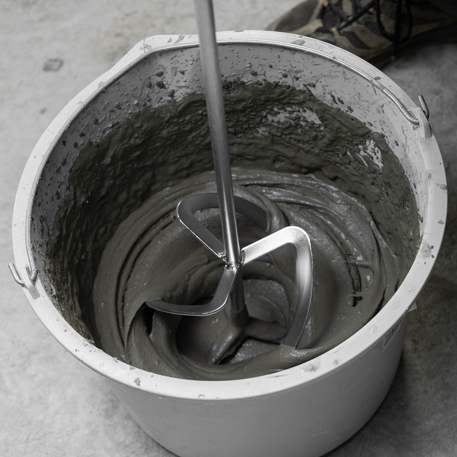 - Прочность — стальная насадка для строительного миксера не деформируется при размешивании густых смесей.