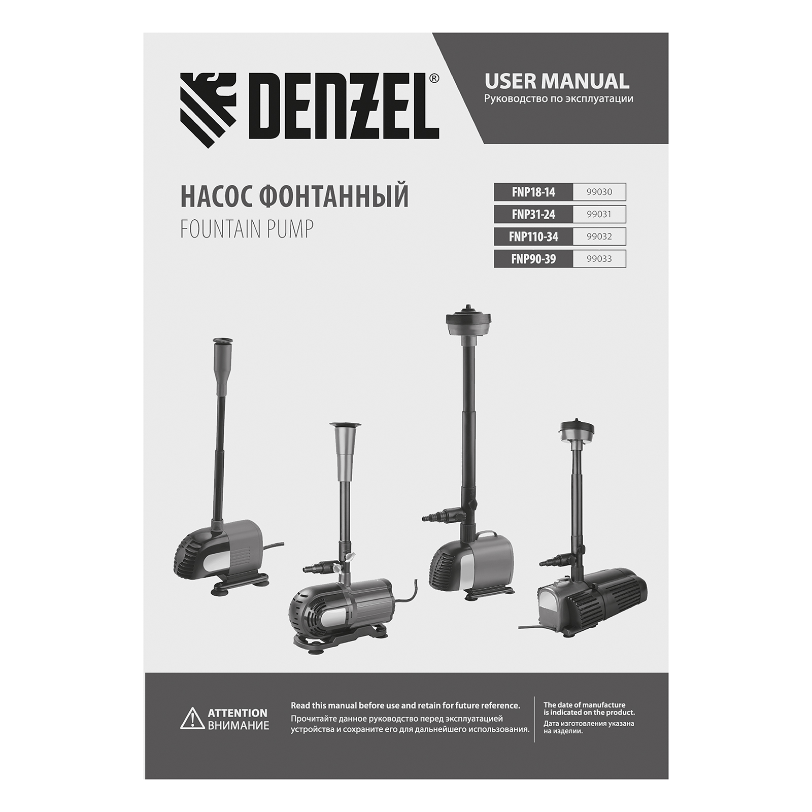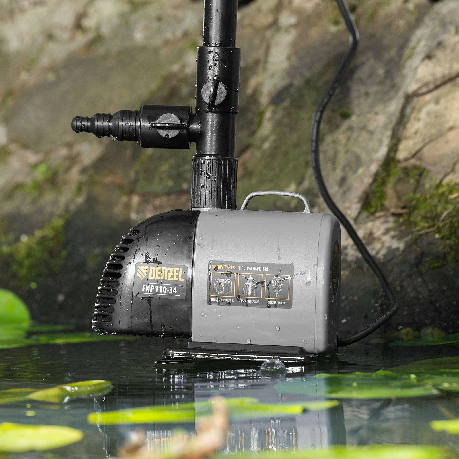 Насос фонтанный FNP110-34, 112 Вт, подъем 3,4 м, 3400 л/ч, колокольчик/каскад/гейзер Denzel в Москве