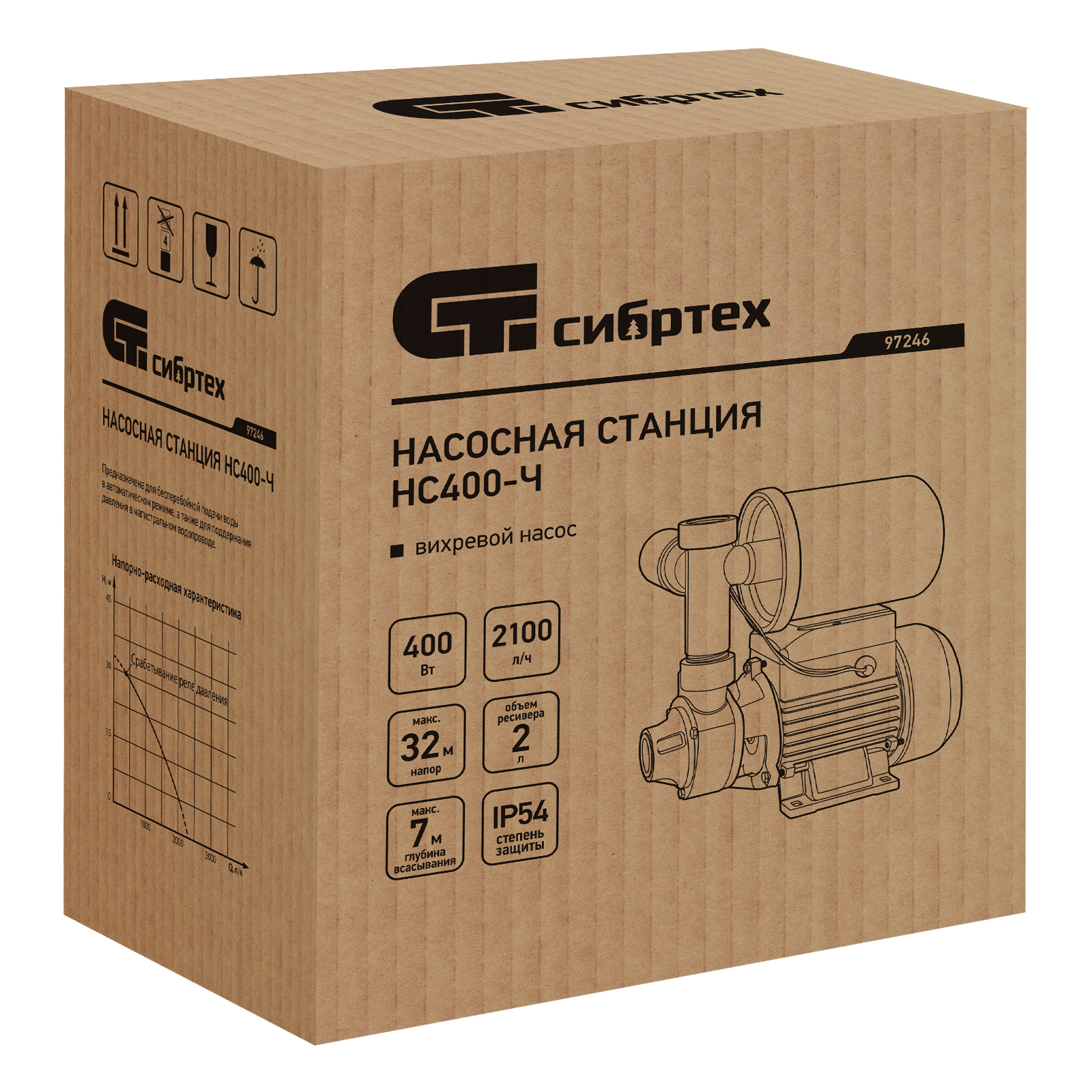 Насосная станция НС400-Ч, 400 Вт, напор 32 м, 2100 л/ч, ресивер 2 л Сибртех в Москве