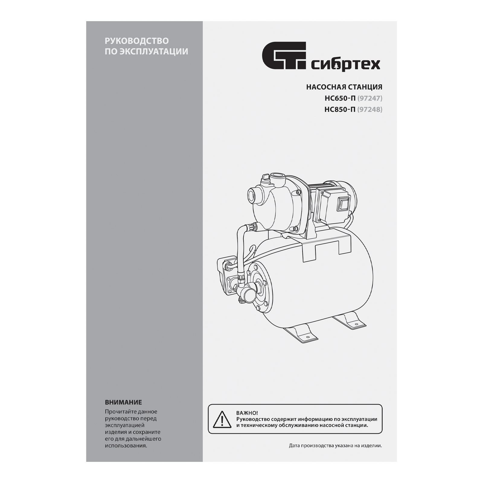 Насосная станция Сибртех НС850-П 97248 мощностью 850 Вт, с ресивером на 19 л, работает со скоростью 3500 л/ч и обеспечивает напор до 42 м. Используется для обеспечения подачи воды в загородных домах, поддержания давления в системе водоснабжения квартир. Однофазный мотор обеспечивает производительность на уровне 58 л/мин под давлением не более 2,8 бар.,Станция работает в автоматическом режиме: накапливает воду в ресивере и включается по мере ее потребления. Подача воды также происходит экономно: она поступает к сантехническому оборудованию и кранам только в момент их включения. Пробка заливной горловины легко откручивается, поэтому подготовить насосную станцию к первому запуску не составит труда.