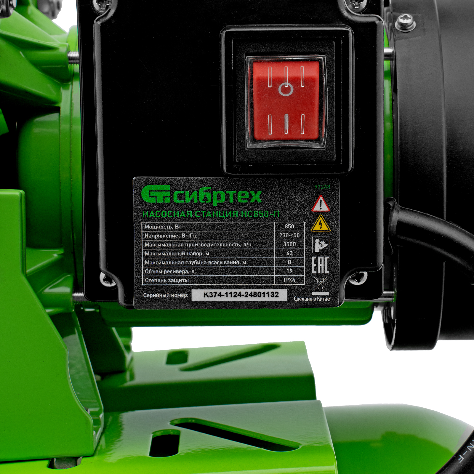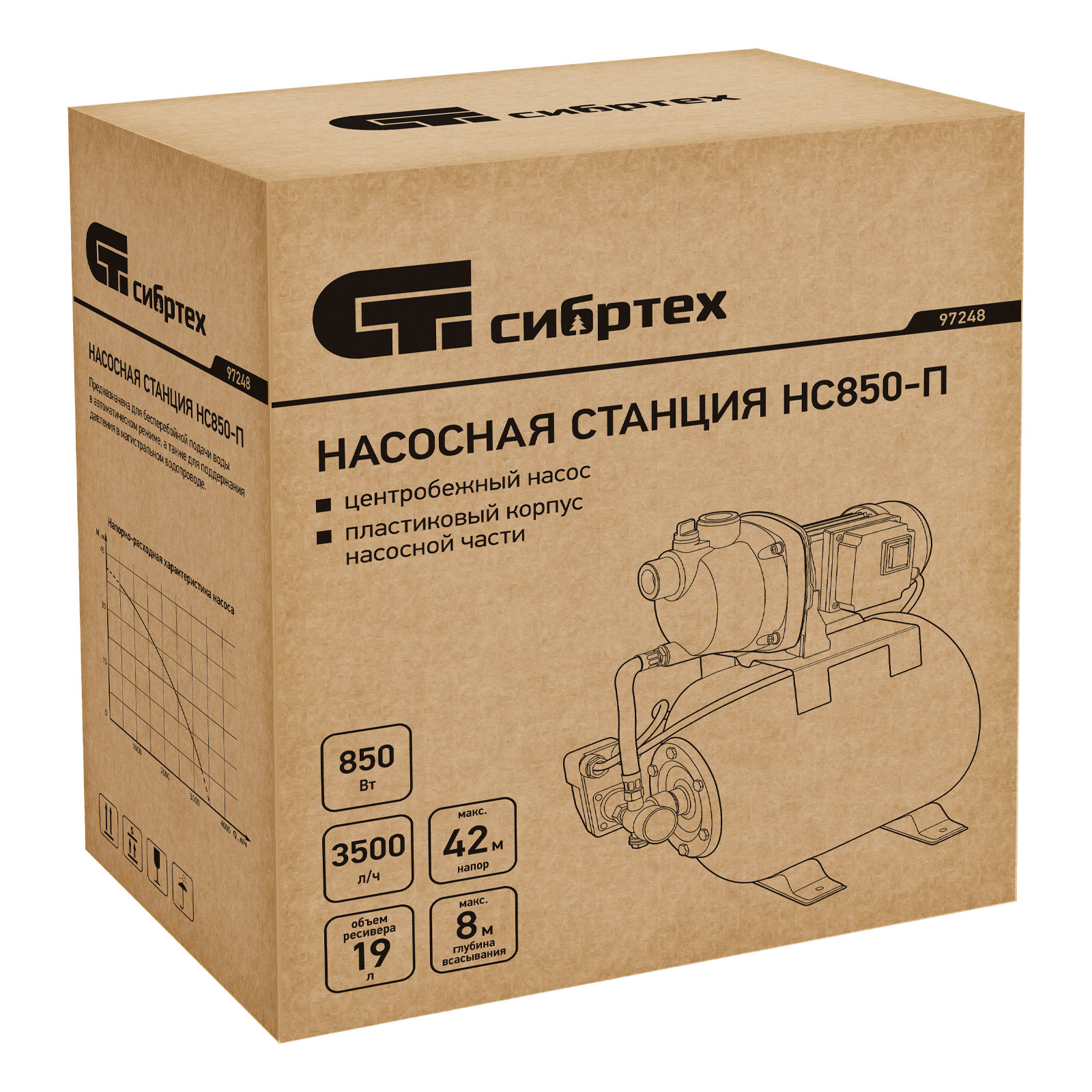 Насосная станция НС850-П, 850 Вт, напор 42 м, 3500 л/ч, ресивер 19 л Сибртех в Москве