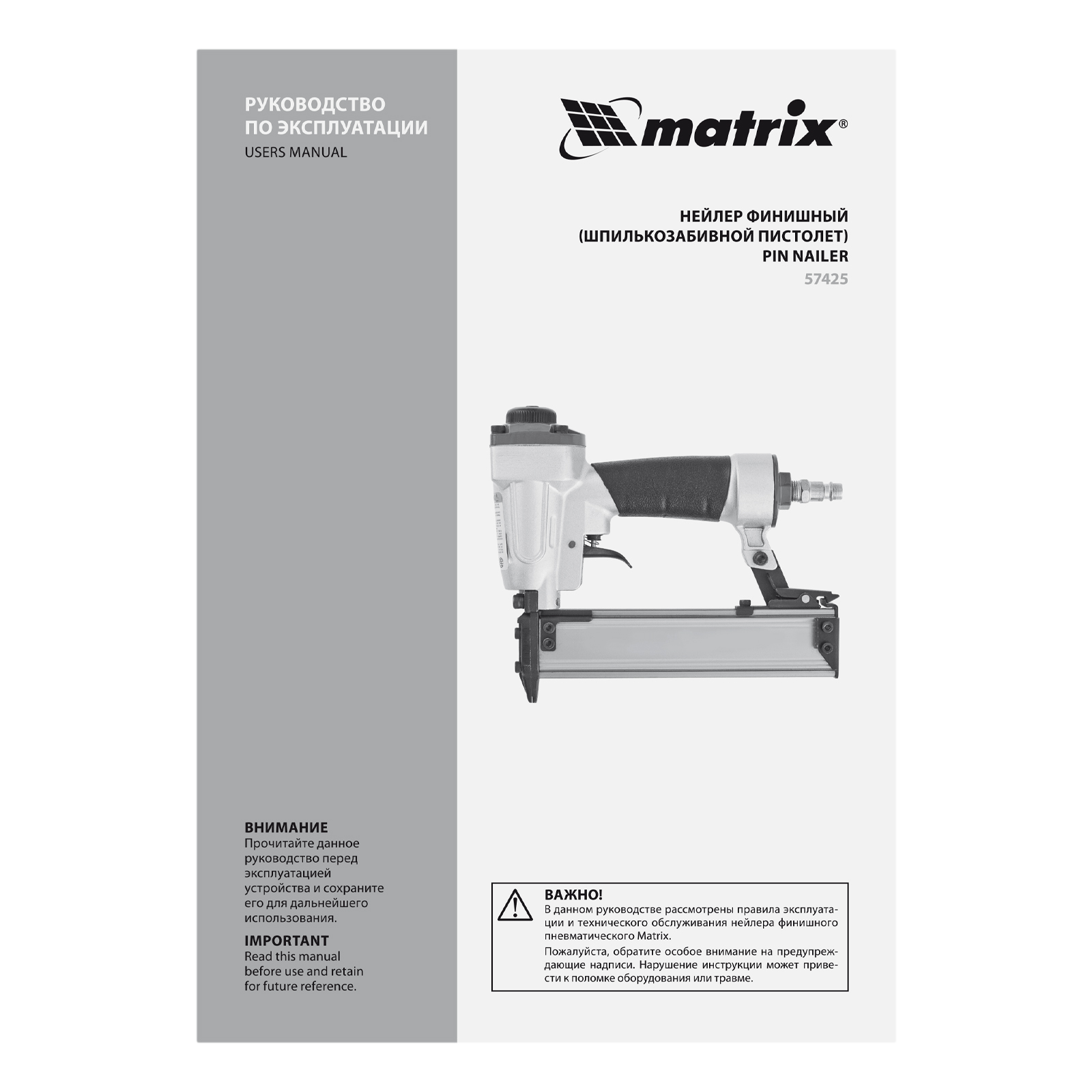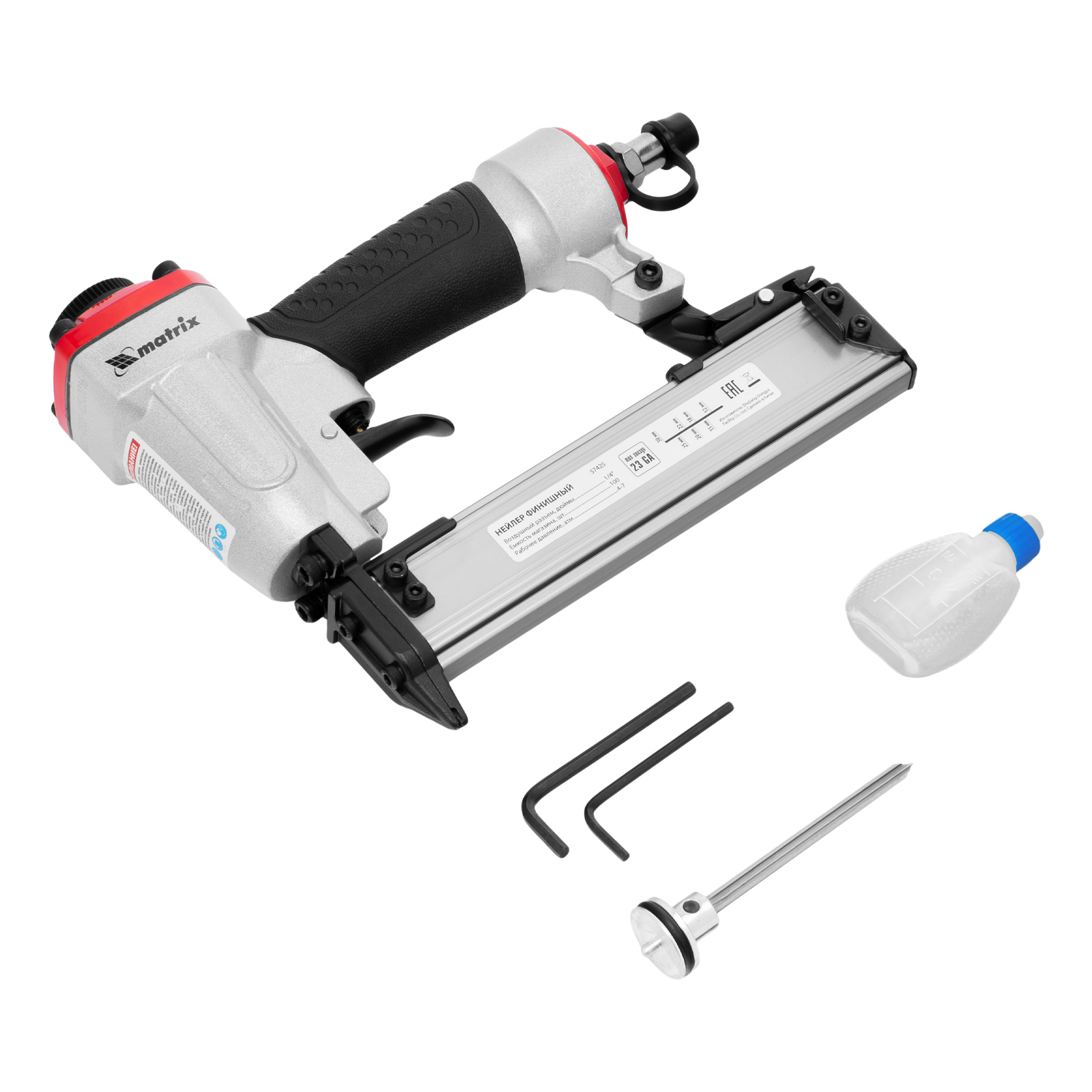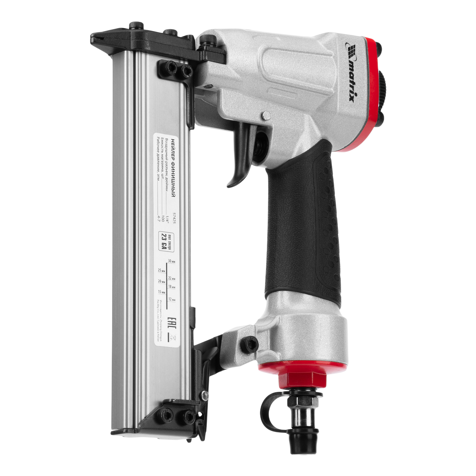Нейлер финишный, шпилькозабивной пистолет, пневматический, гвоздь 23GA D 0.64 мм длина 10-30 мм Matrix в Москве