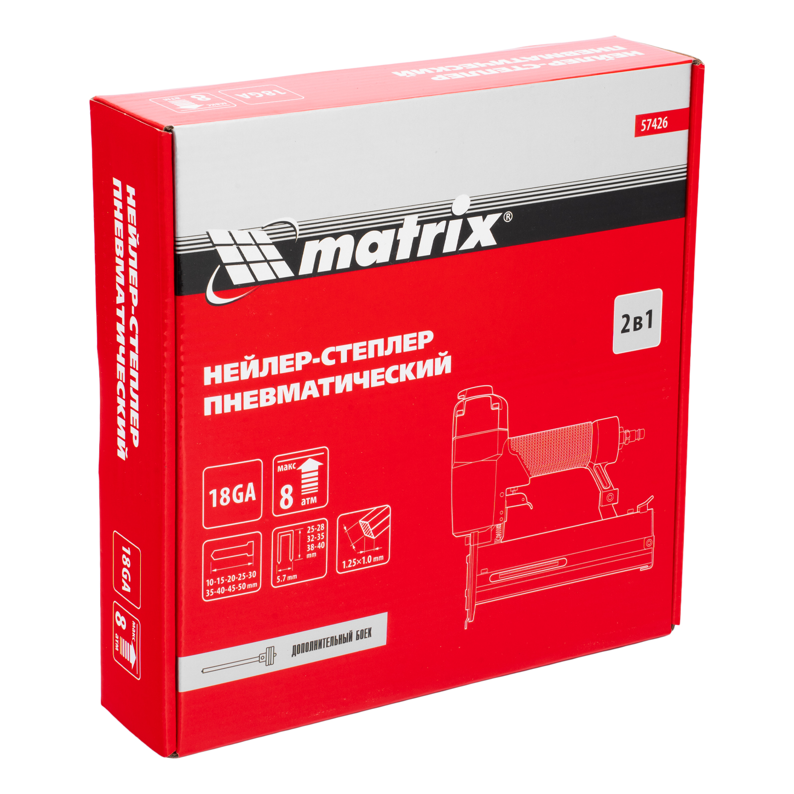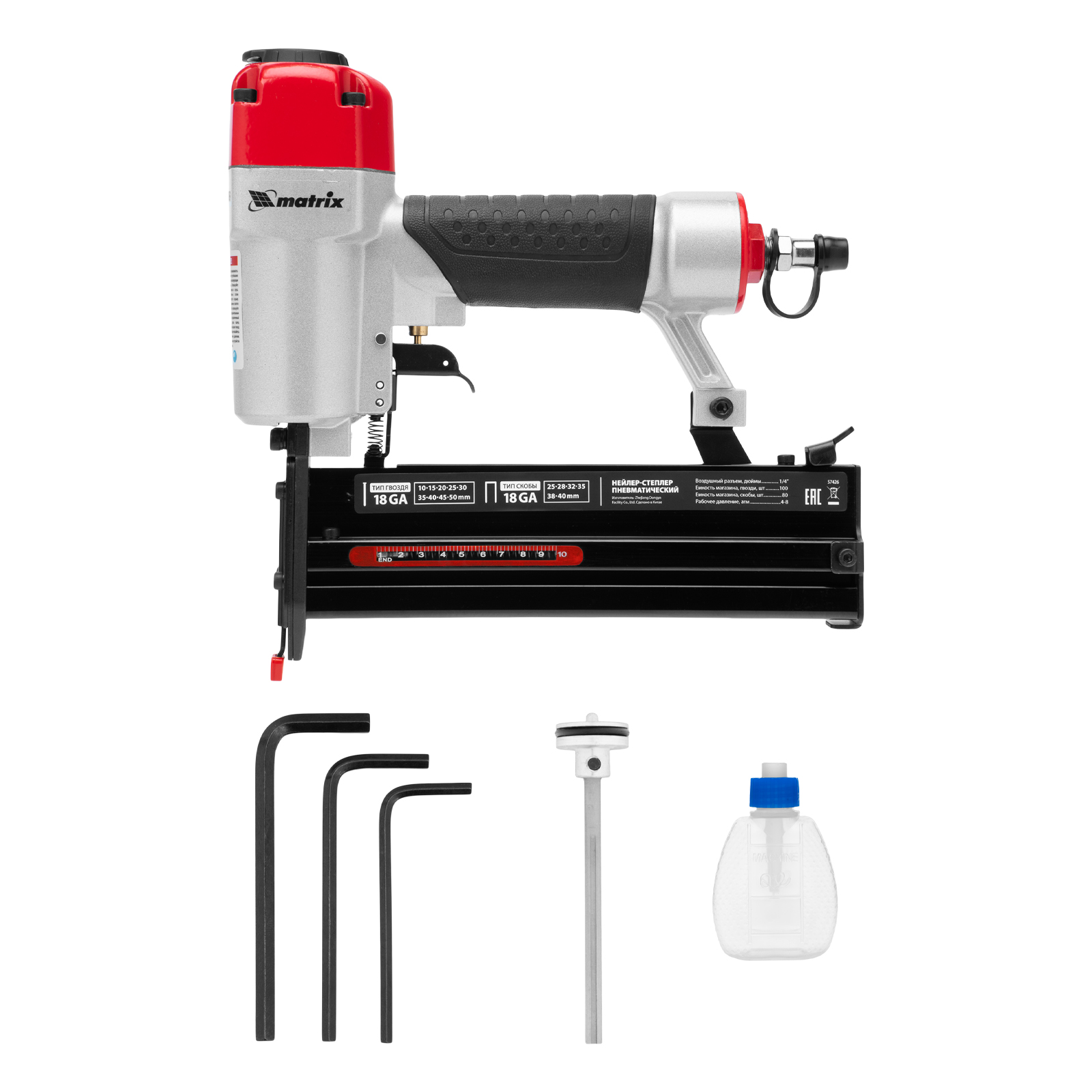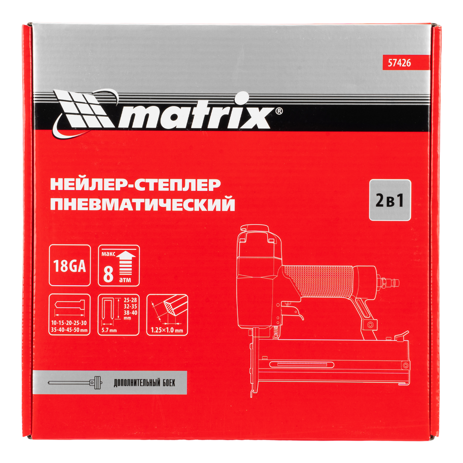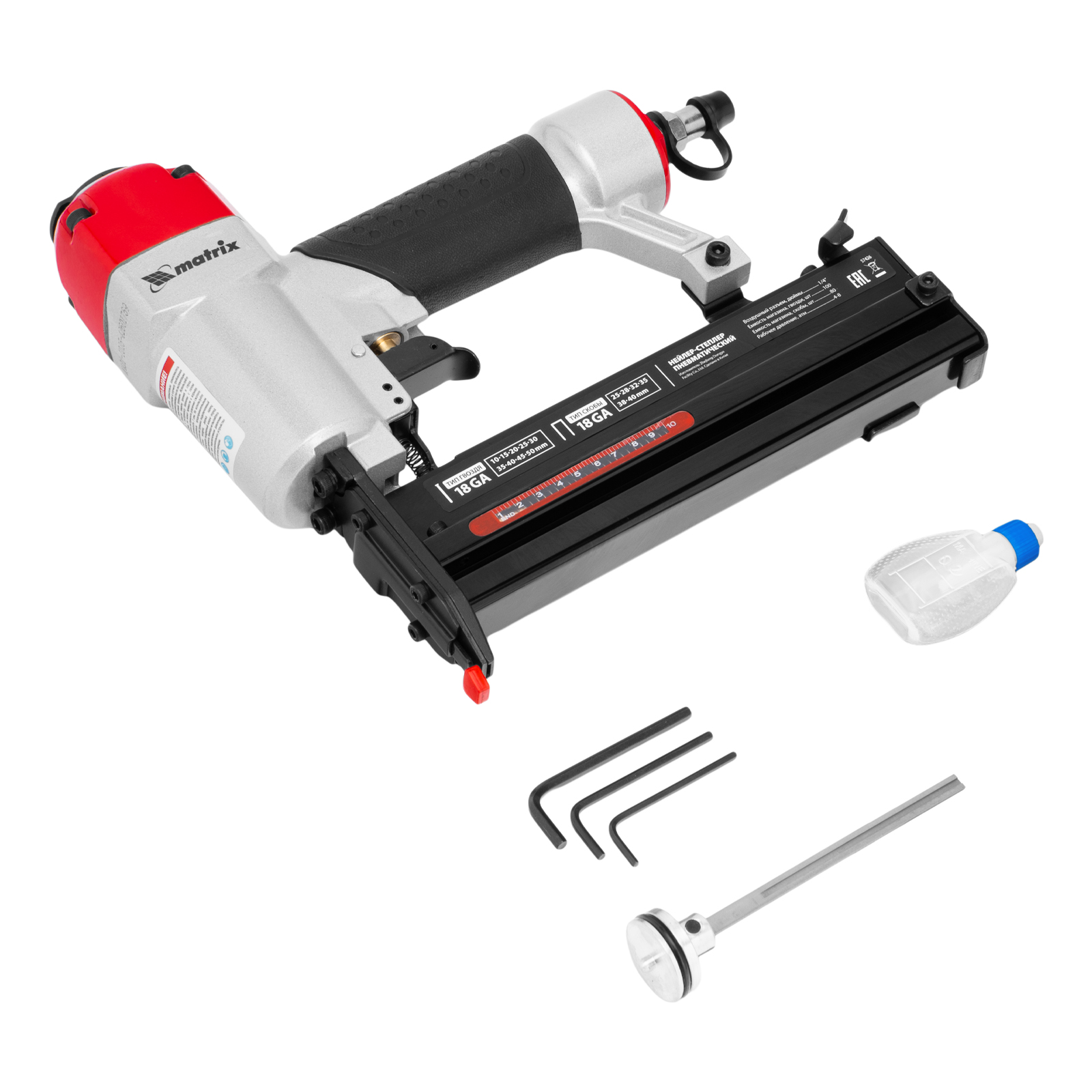 Нейлер-степлер пневматический 2 в 1, гвозди 18GA длина 10-50 мм, скобы 18GA длина 25-40 мм Matrix в Москве