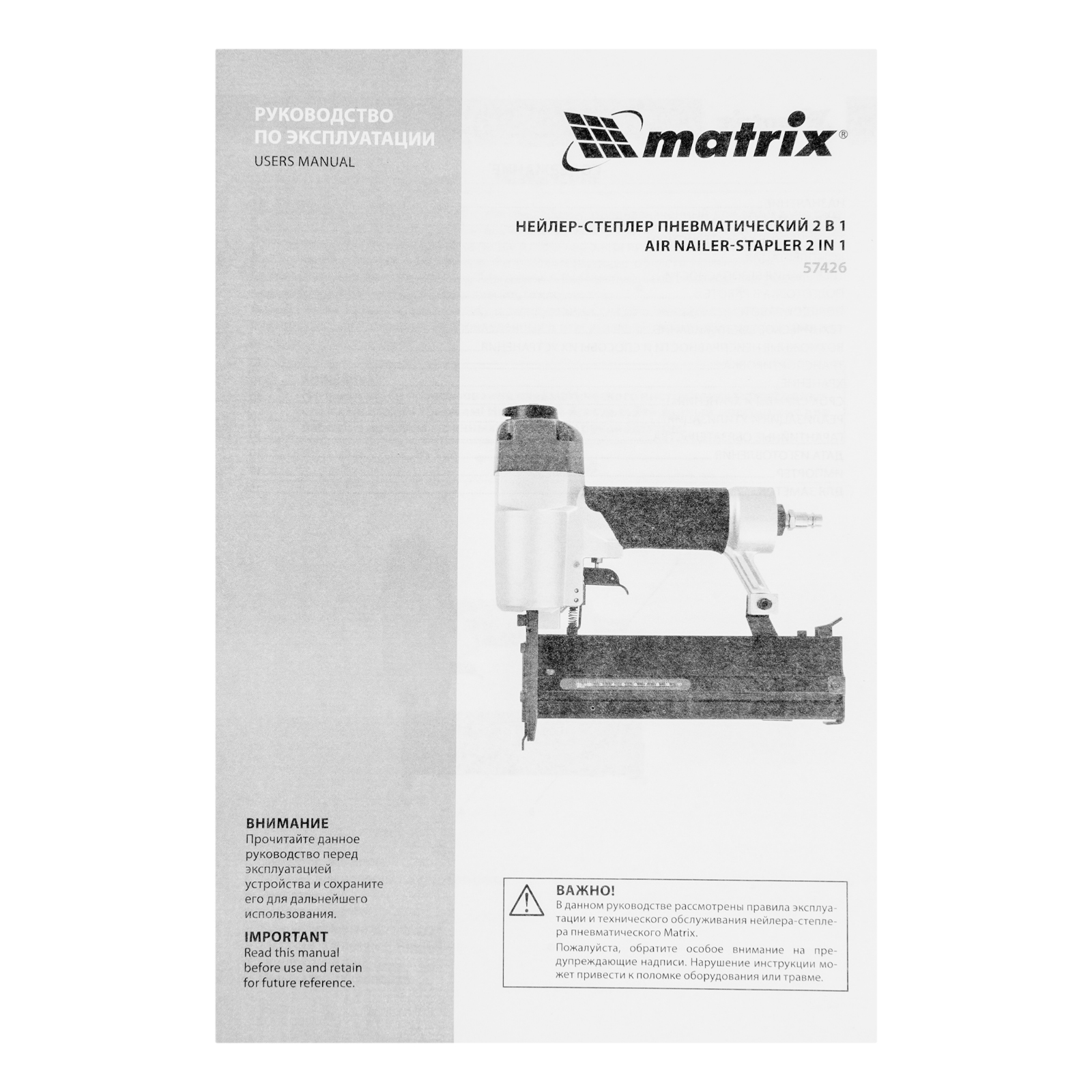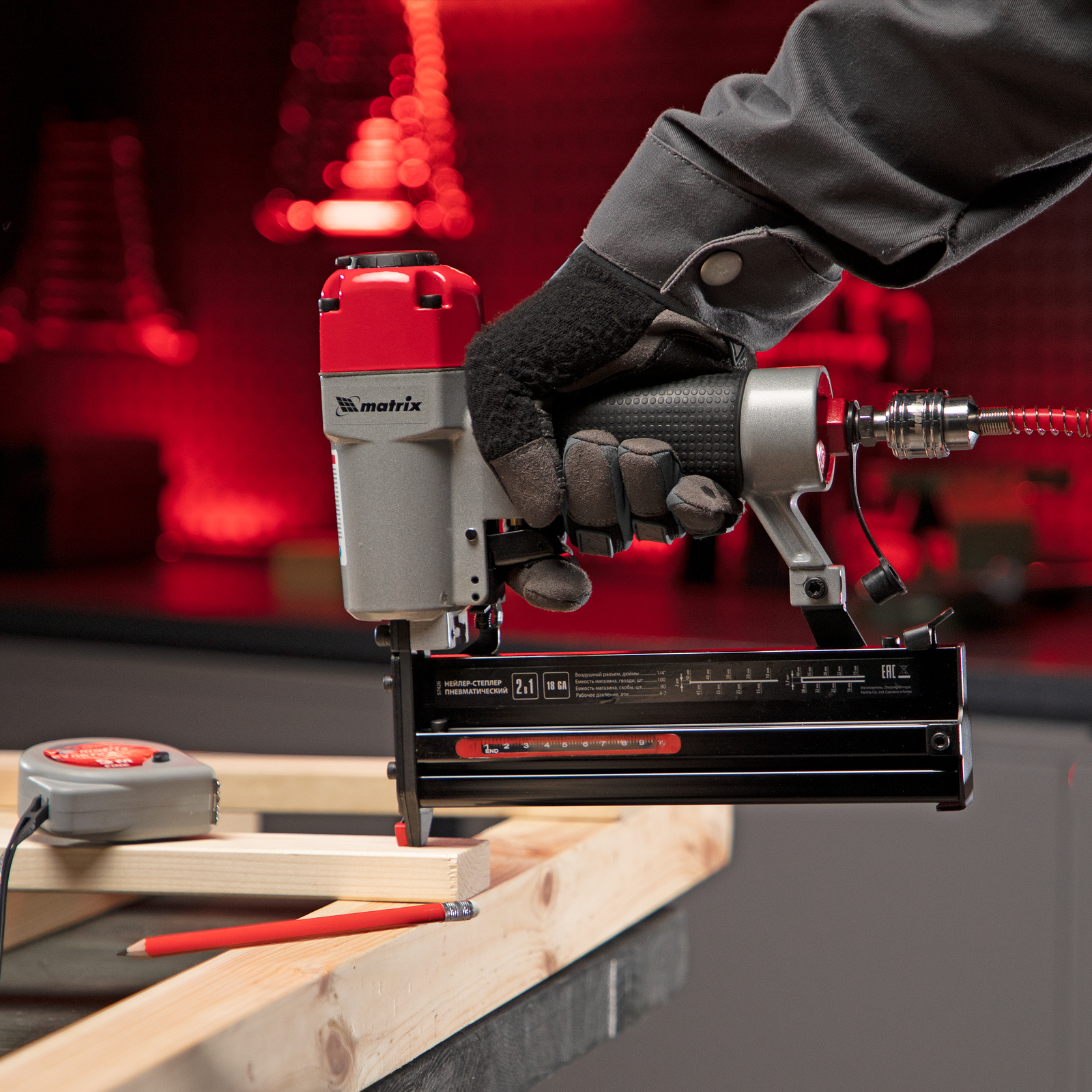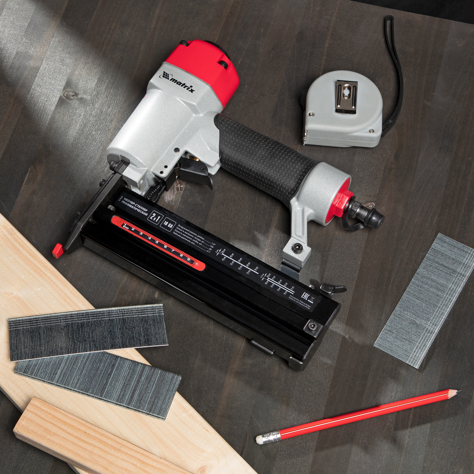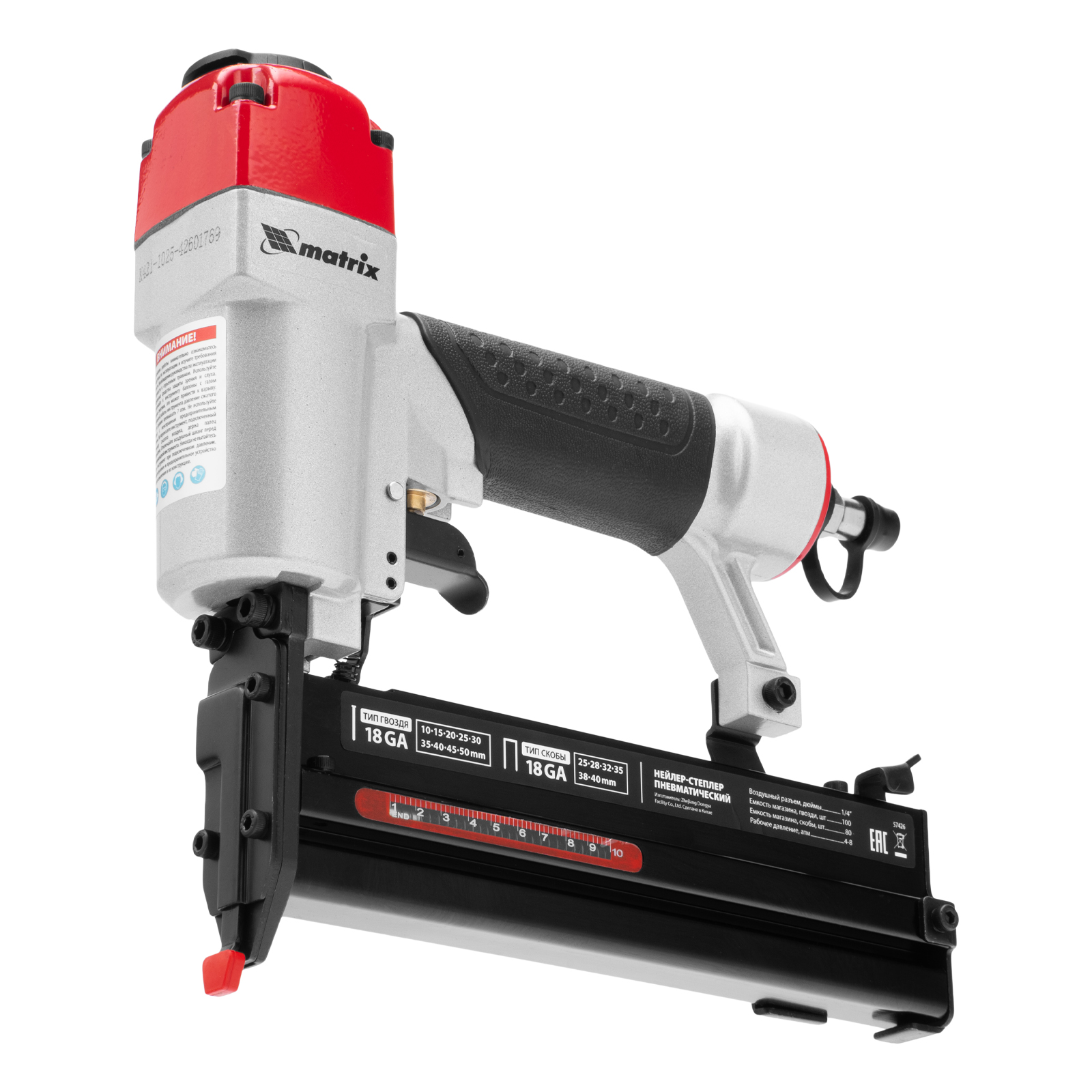 Нейлер-степлер пневматический 2 в 1, гвозди 18GA длина 10-50 мм, скобы 18GA длина 25-40 мм Matrix в Москве
