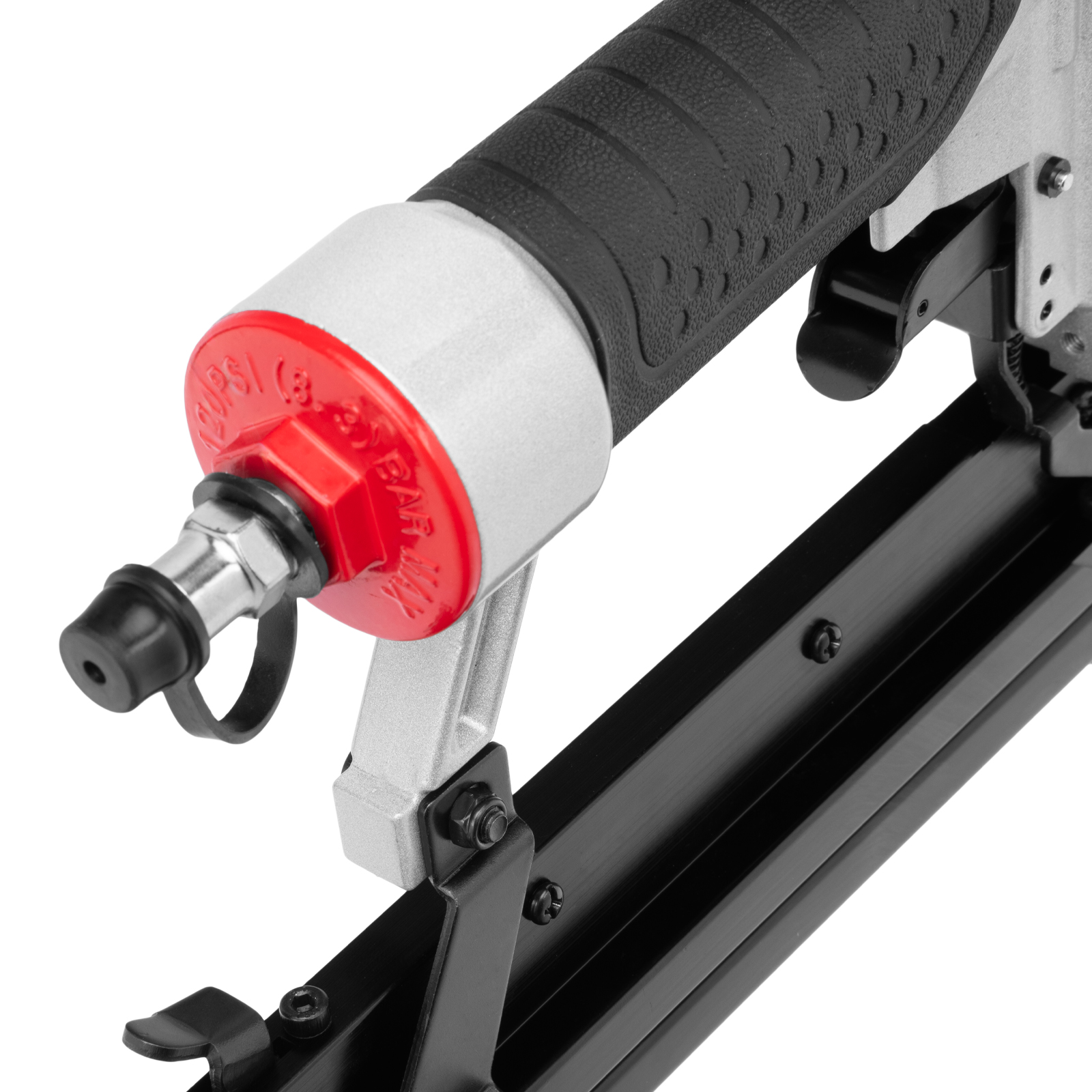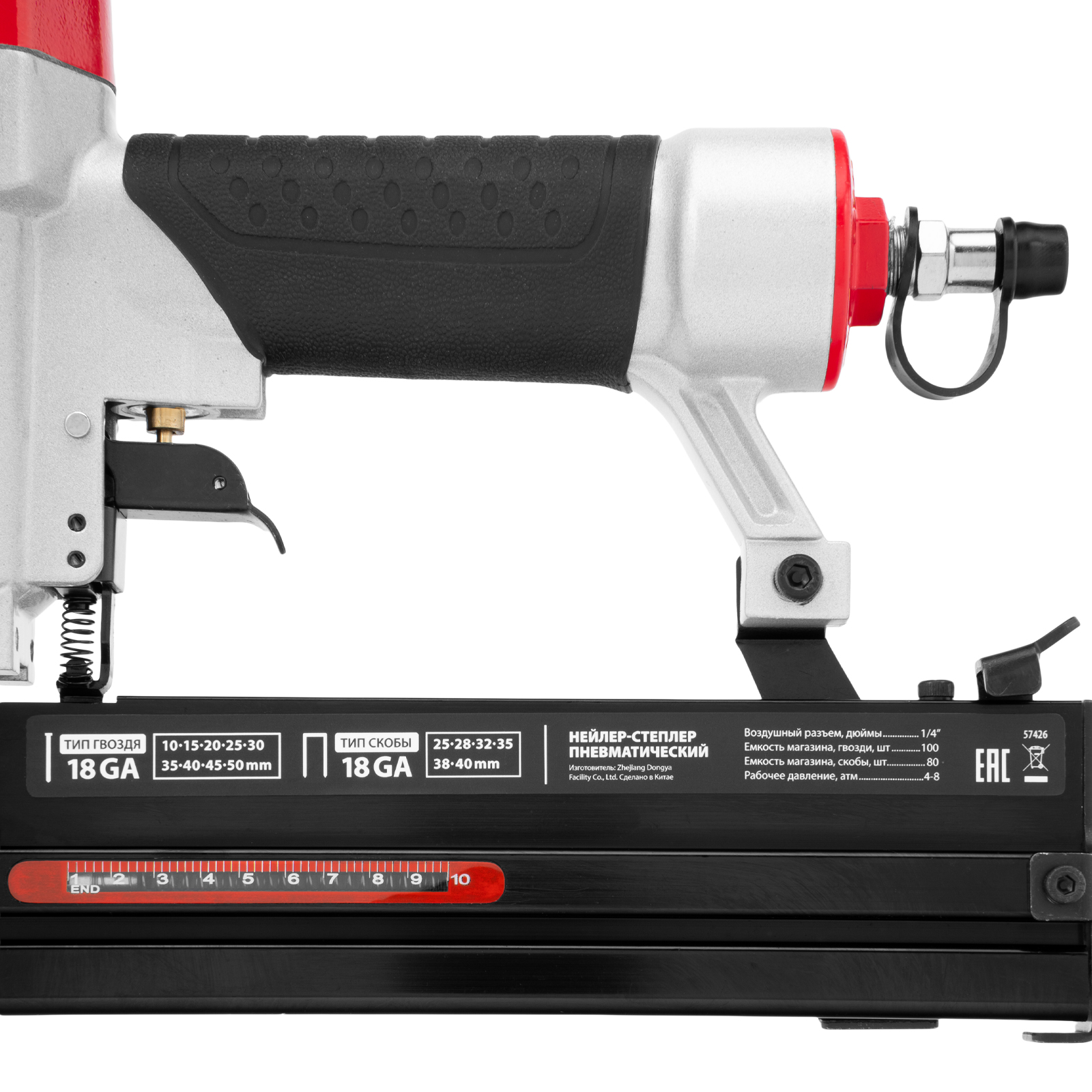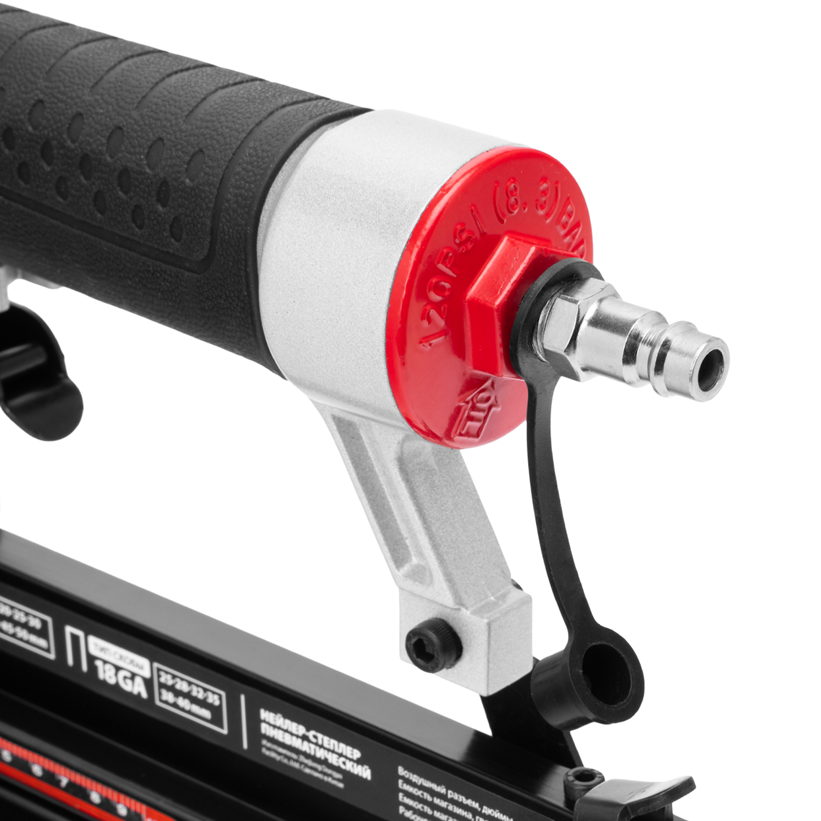 - Безопасность — специальный предохранитель не допускает случайного срабатывания нейлера-степлера.