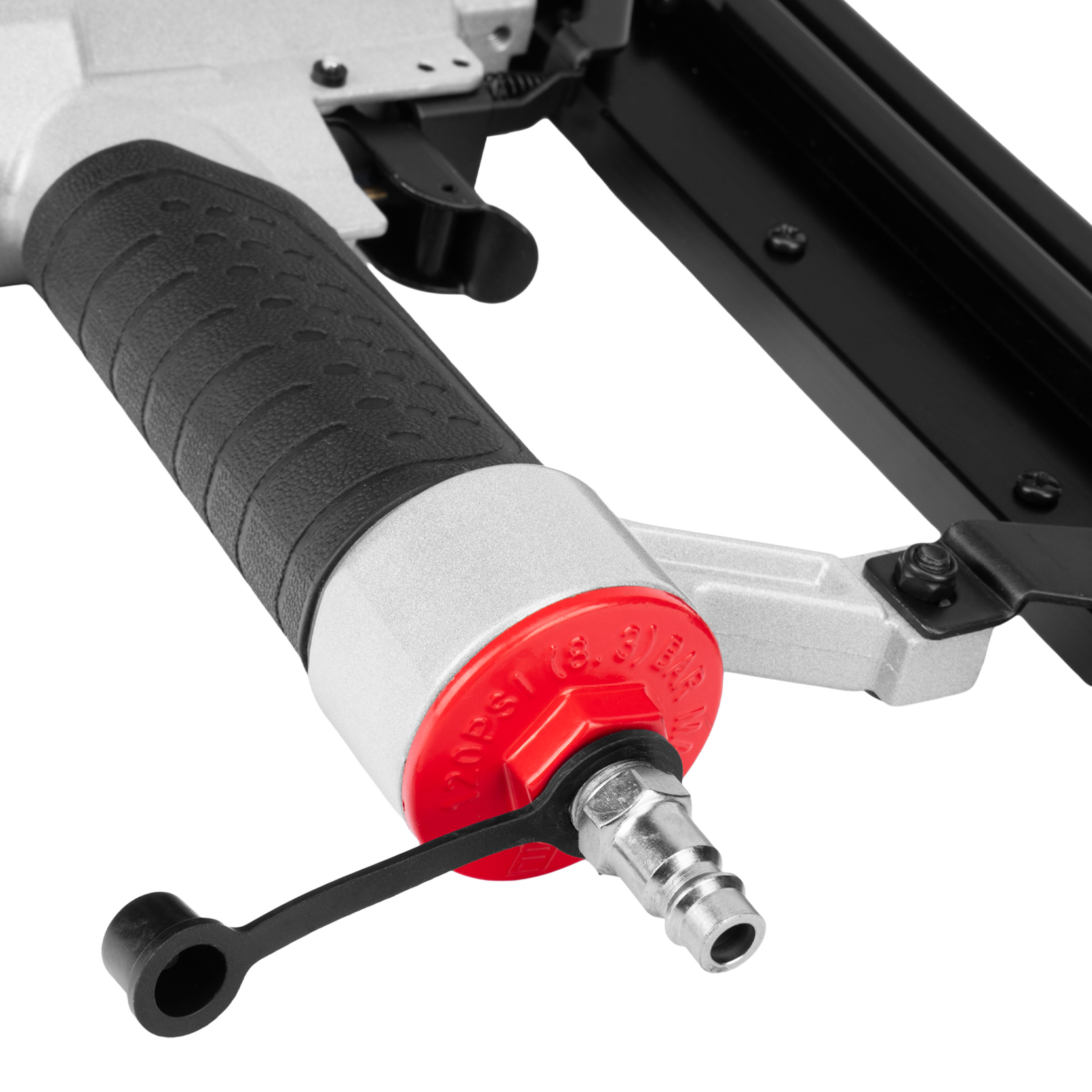 - Эргономичность — благодаря прорезиненному покрытию рукоятки и малому весу 1,5 кг нейлером-степлером можно долго работать без усталости.