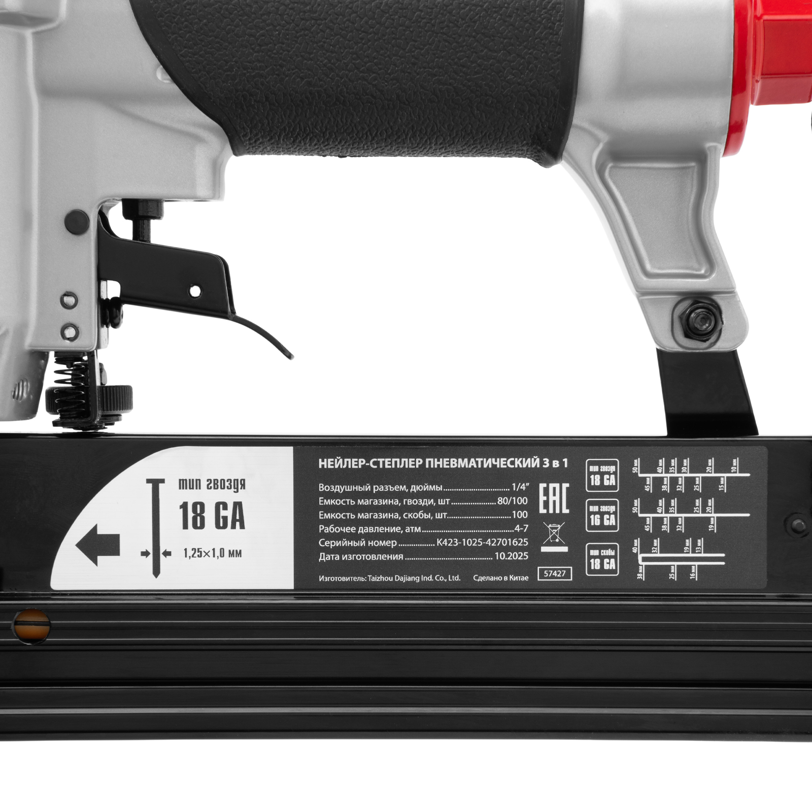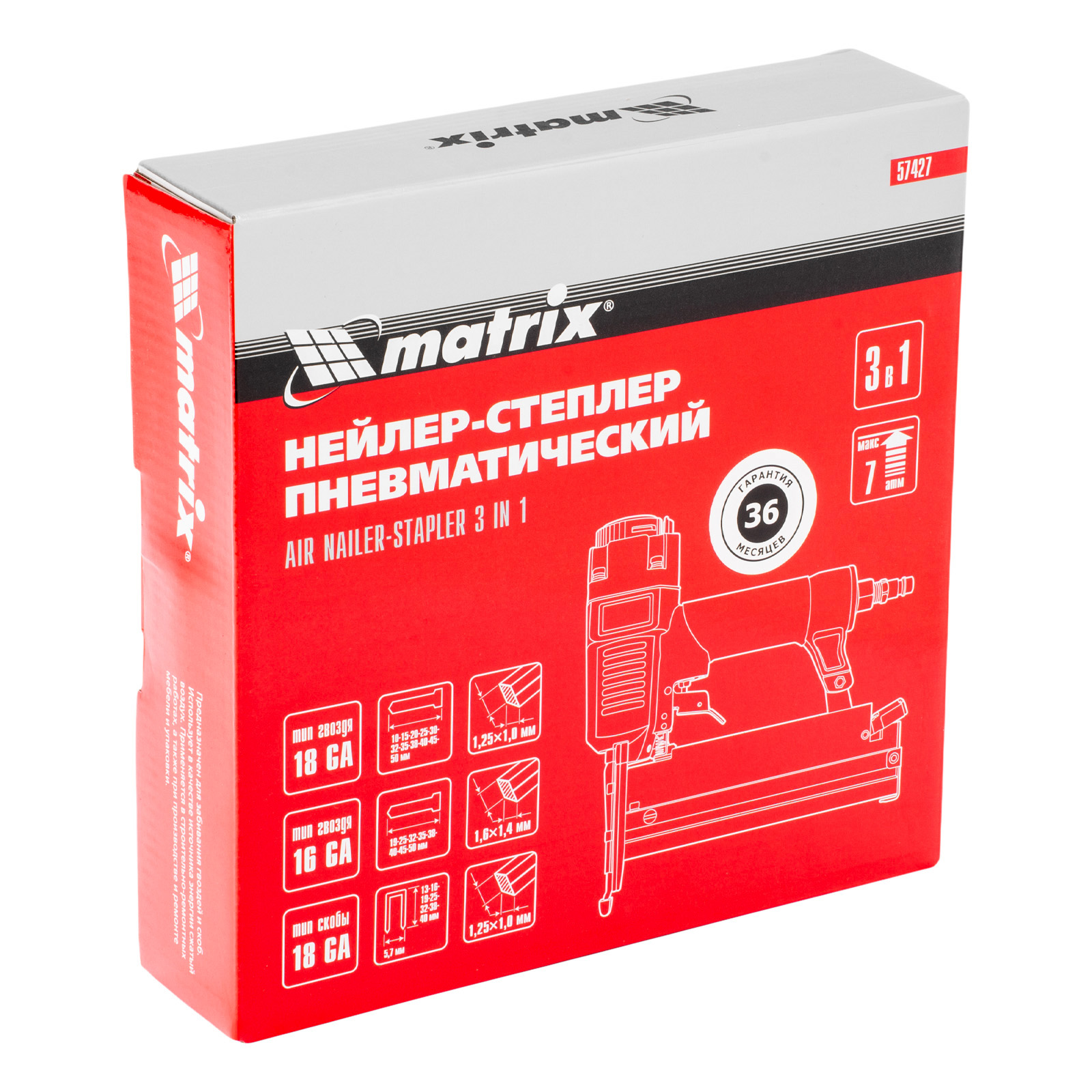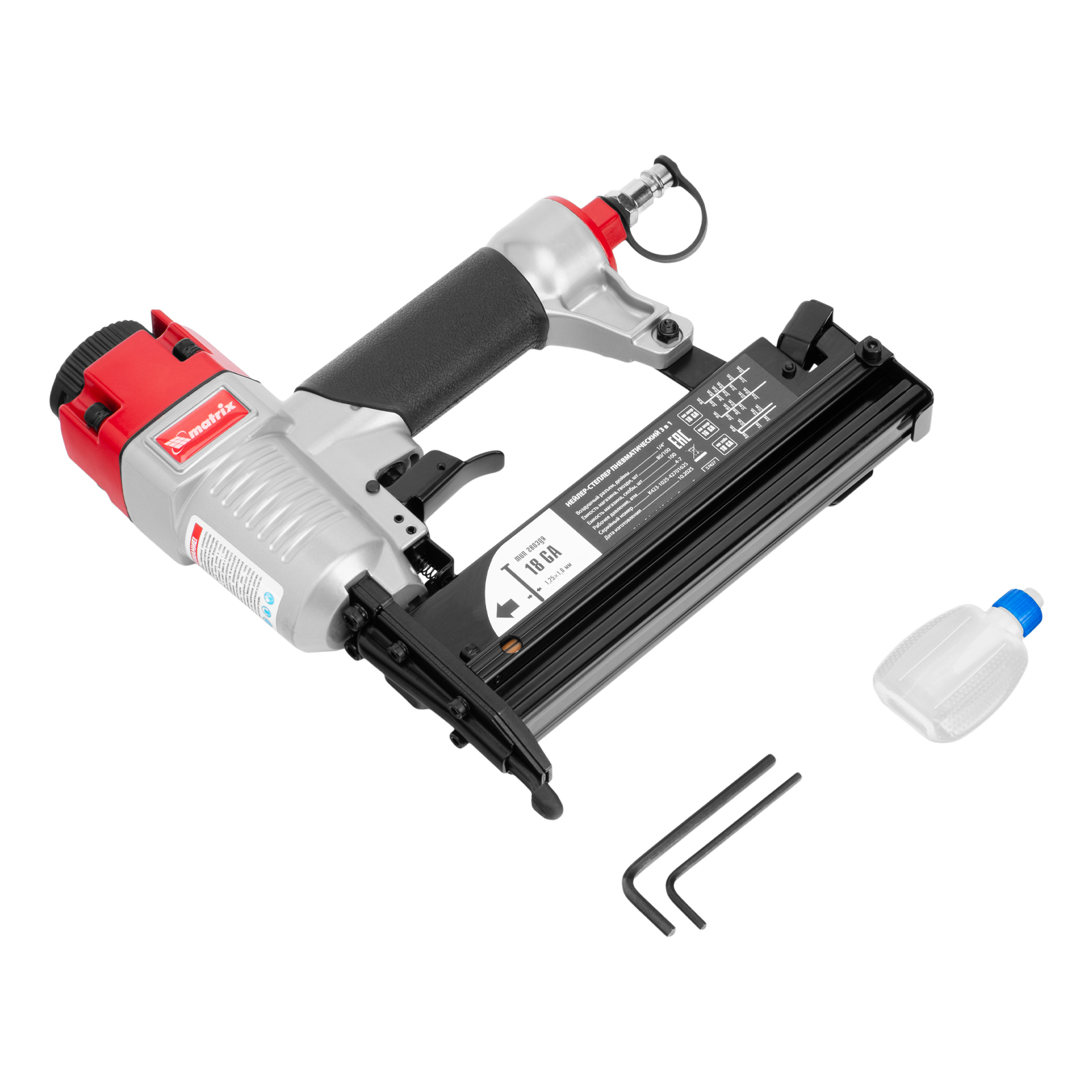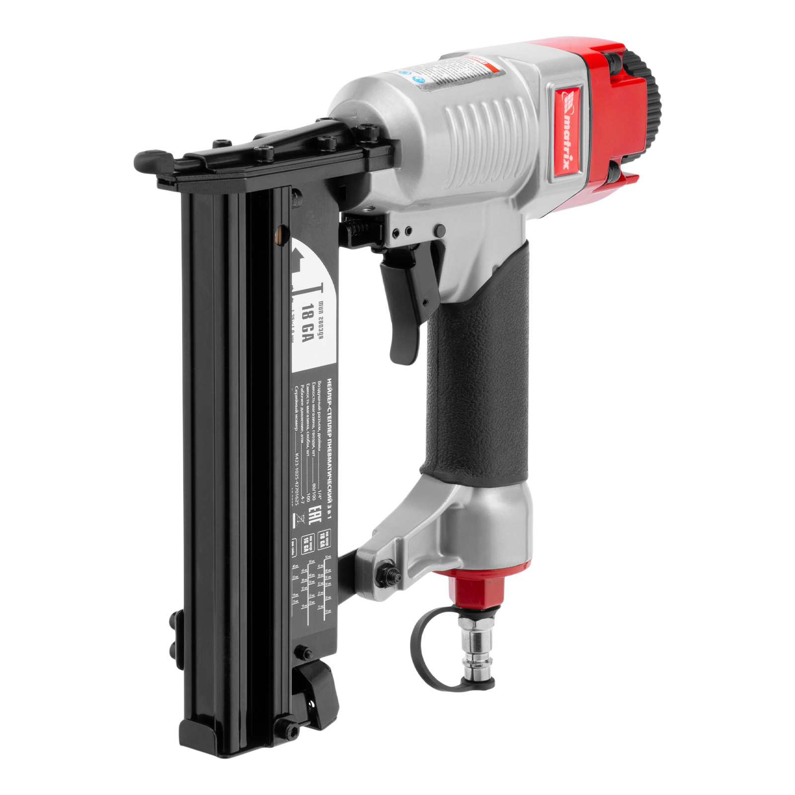 Нейлер-степлер пневматический 3 в 1, с регулировкой глубины забивания, гвозди 18GA, гвозди 16GA, скобы 18 GA Matrix в Москве