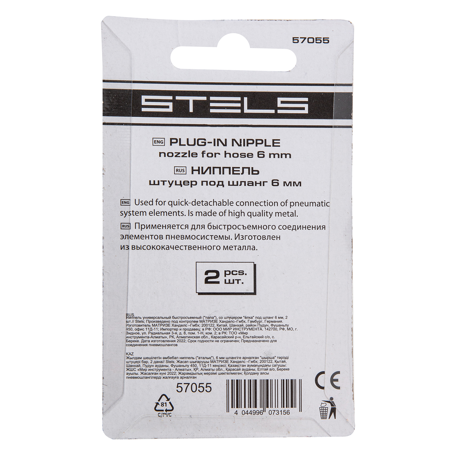 Ниппель универсальный быстросъемный ("папа") 1/4, со штуцером "елка" под шланг 6 мм, 2 шт, Stels в Москве