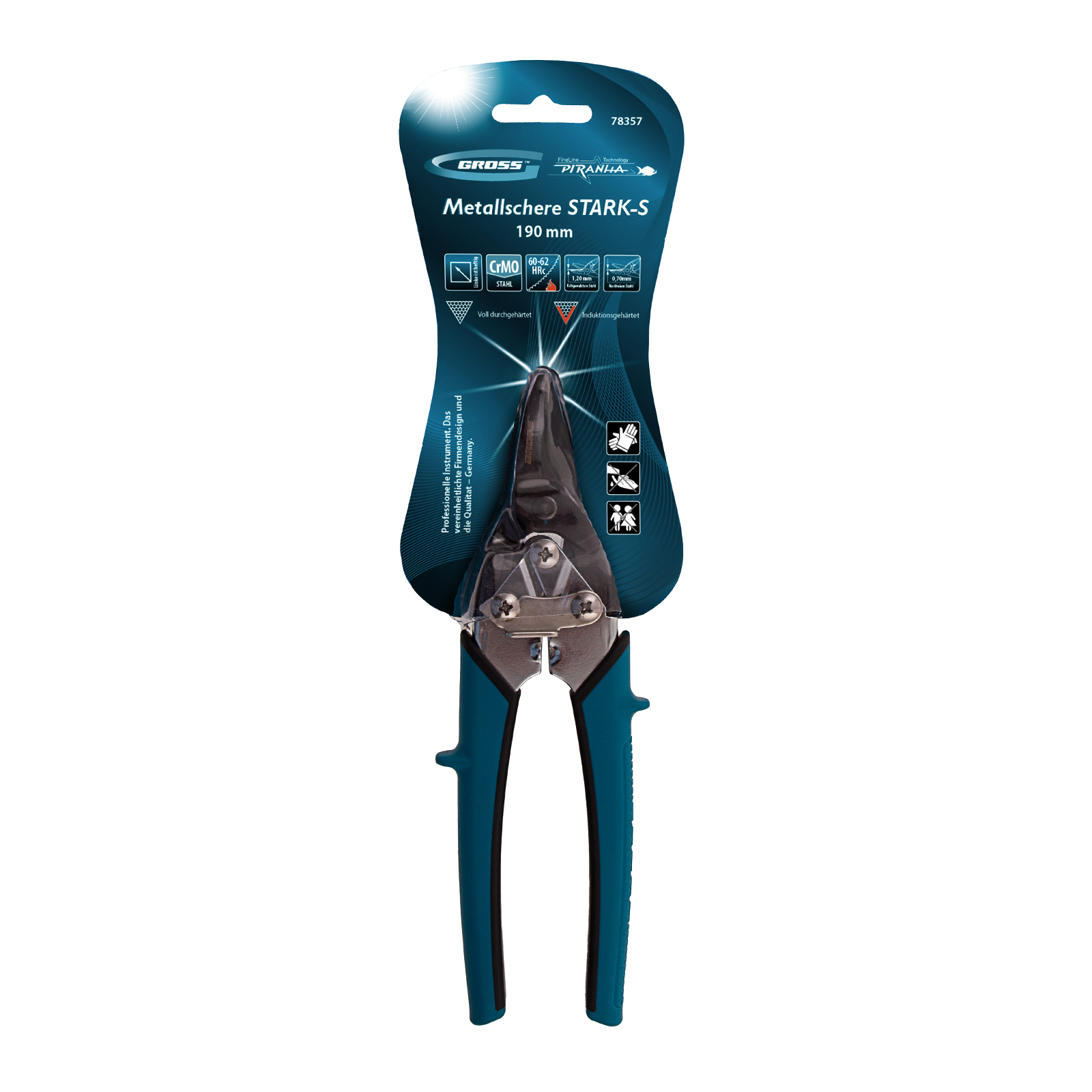 Ножницы по металлу Gross PIRANHA 78357 длиной 190 мм, из стали CrMo, с двухкомпонентными рукоятками, выполняют точный прямой рез по листовым заготовкам. Двойной рычажный механизм облегчает передачу усилия при резке твердых материалов. Ножницы имеют компактные размеры и удобны для работы в стесненных условиях. Подойдут для профессионального и домашнего использования.