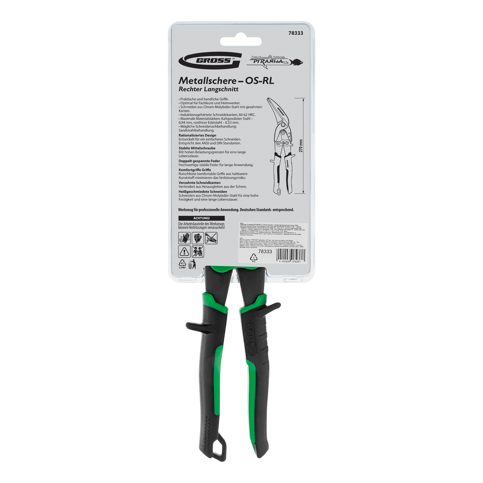 Ножницы по металлу "Piranha", 270 мм, прямой и правый проходной рез, сталь СrMo, двухкомпонентные рукоятки Gross в Москве
