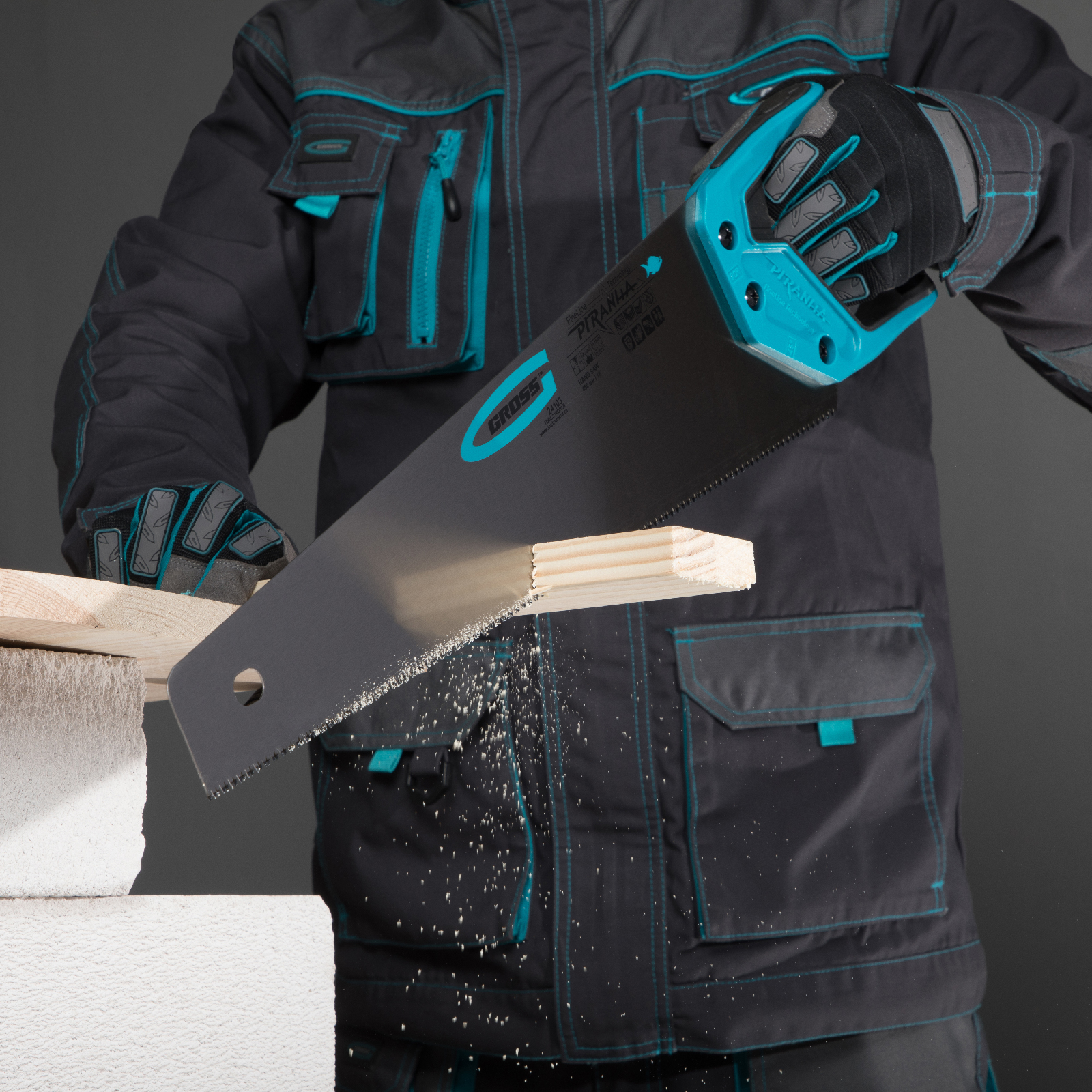 Ножовка по дереву Gross PIRANHA 24103 с полотном длиной 450 мм, калеными зубьями с 3D-заточкой и шагом 11-12 TPI, 2-компонентной рукояткой, предназначена для распиловки заготовок из древесины, ДСП, ДВП, МДФ и ламината, а также из пластических материалов, таких как пенополистирол и полиуретан. Может производить продольный и поперечный распил. Мелкие зубья с шагом 11-12 TPI позволяют выполнять точный и чистый рез. Ножовка обладает высокой производительностью благодаря трехгранной заточке зубьев. Инструмент используется в столярном деле.