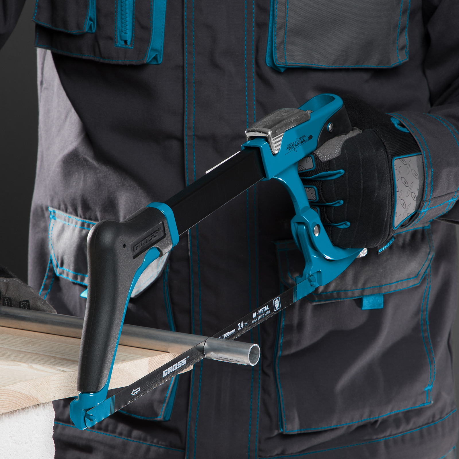 Ножовка по металлу Gross «PIRANHA» 77604, 300 мм, с рычажным механизмом натяжения полотна подходит для профессиональных строительных и слесарных операций. Подходит для поперечного и продольного реза заготовок за счет возможности установки полотна под углом 45° и 90°.