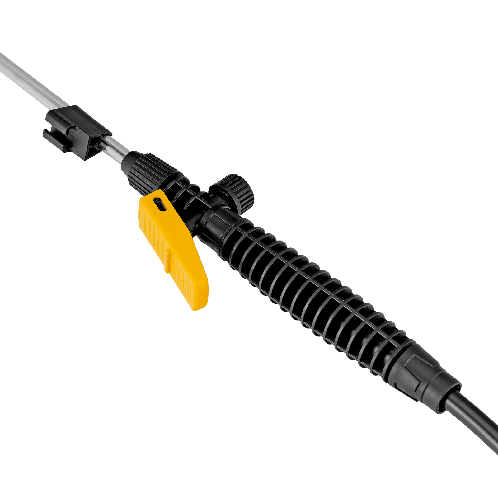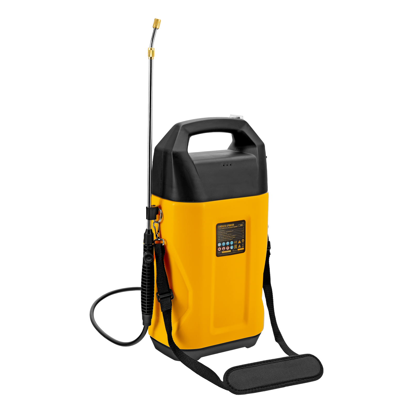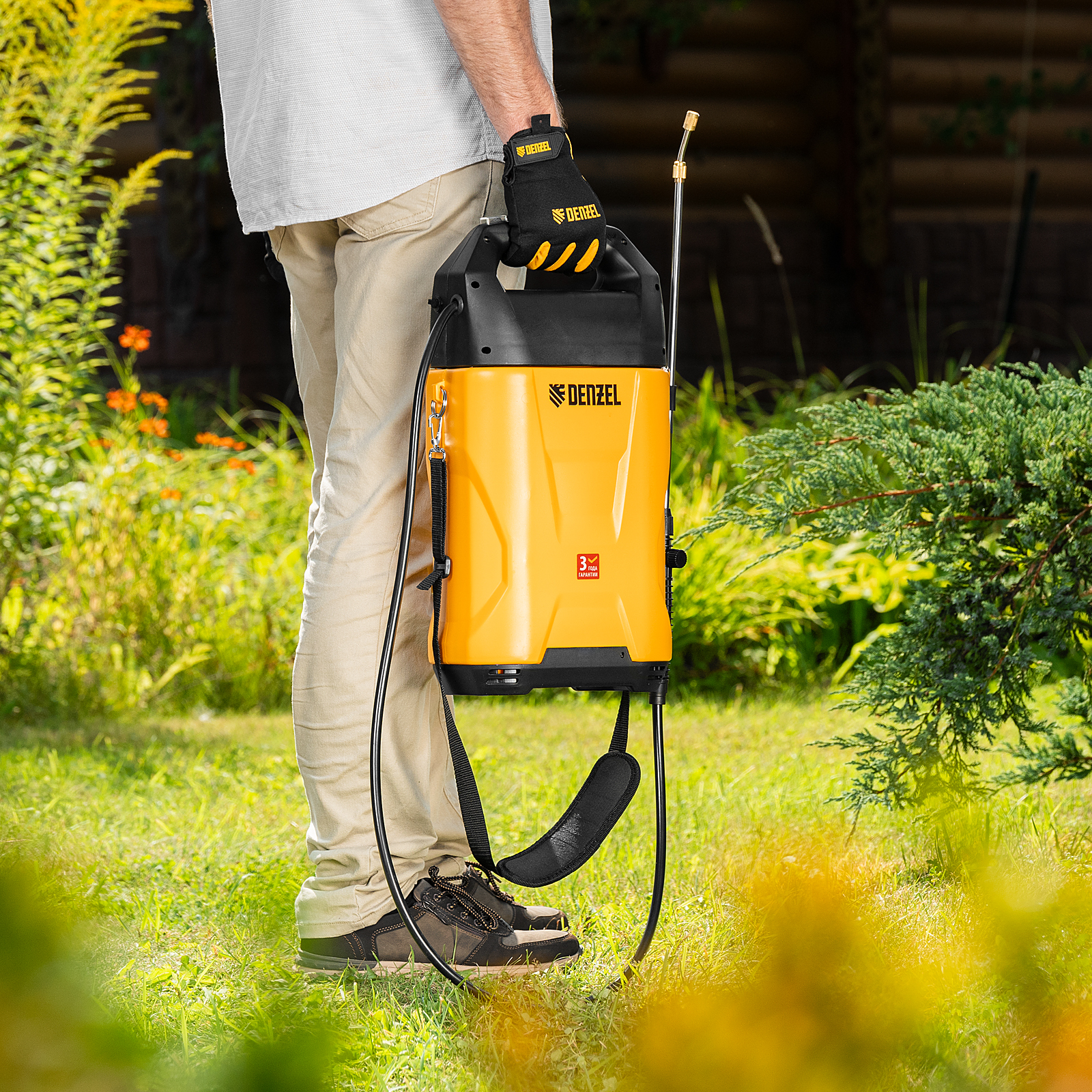Аккумуляторный опрыскиватель Denzel D-8LI 64795 с баком объемом 8 л и Li-Ion батареей на 12 В, емкостью 2 А·ч, используется для ухода за растениями, а также для распыления инсектицидных жидкостей, дезинфекции помещений, мытья окон, стен и дорожек. Длина штанги регулируется в диапазоне 380-630 мм, а максимальная дальность распыления составляет 4 м, что позволяет обрабатывать участки большой площади и труднодоступные места. Опрыскиватель экономит силы и время пользователя, будет полезен в быту и на производстве.