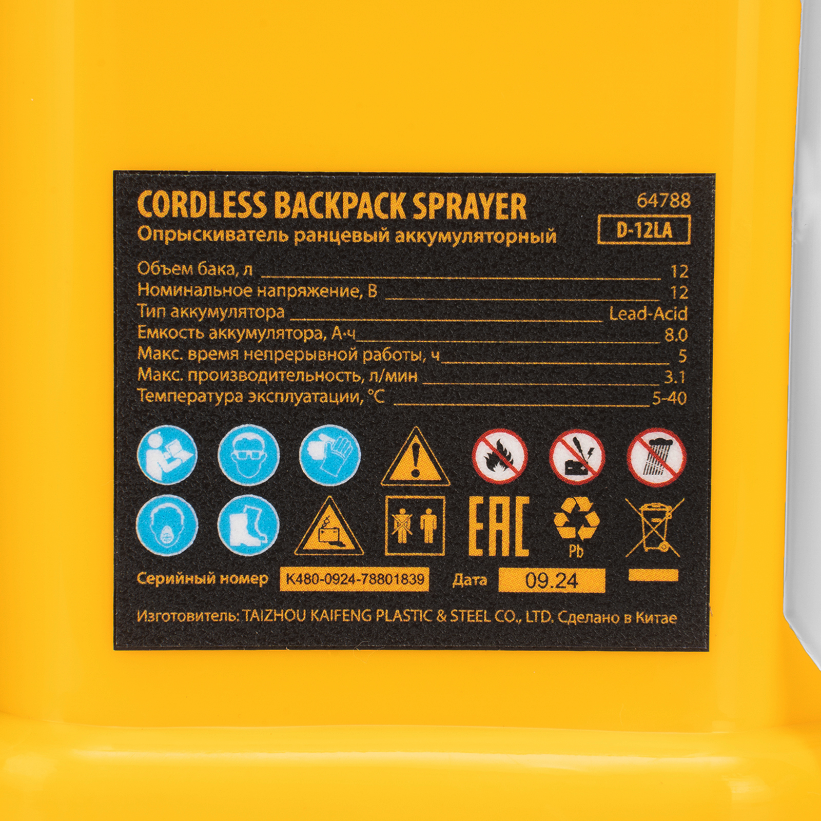 Опрыскиватель ранцевый аккумуляторный D-12LA, 12 л, 12 В, 8 Ач Denzel в Москве