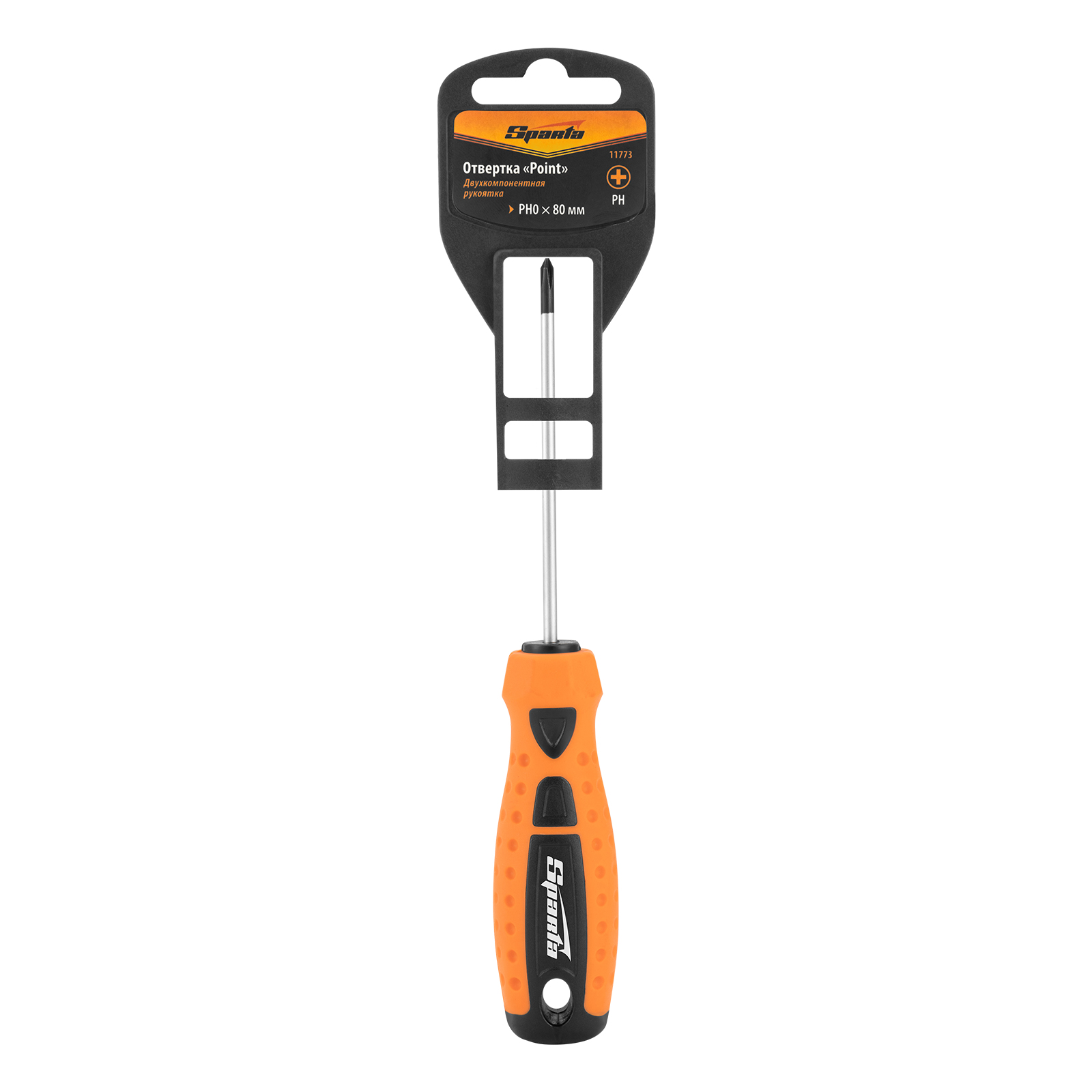 Отвертка "Point", PH0 х 80 мм, CS, двухкомпонентная рукоятка Sparta в Москве