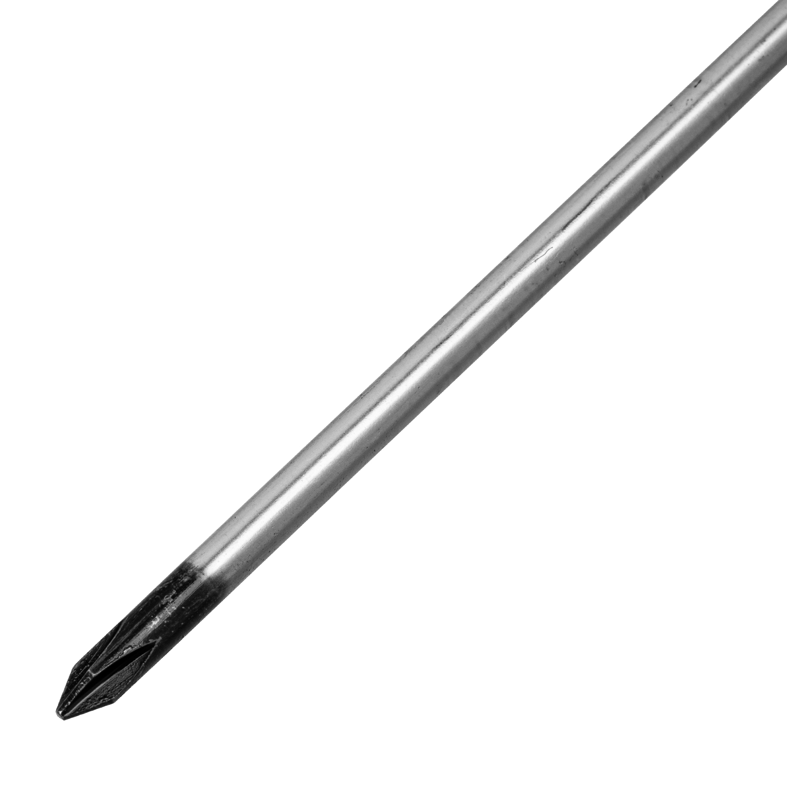 - Стержень и жало выполнены из износостойкой легированной стали CrV твердостью 50-52 HRC, что обеспечивает долгий срок службы отвертки.