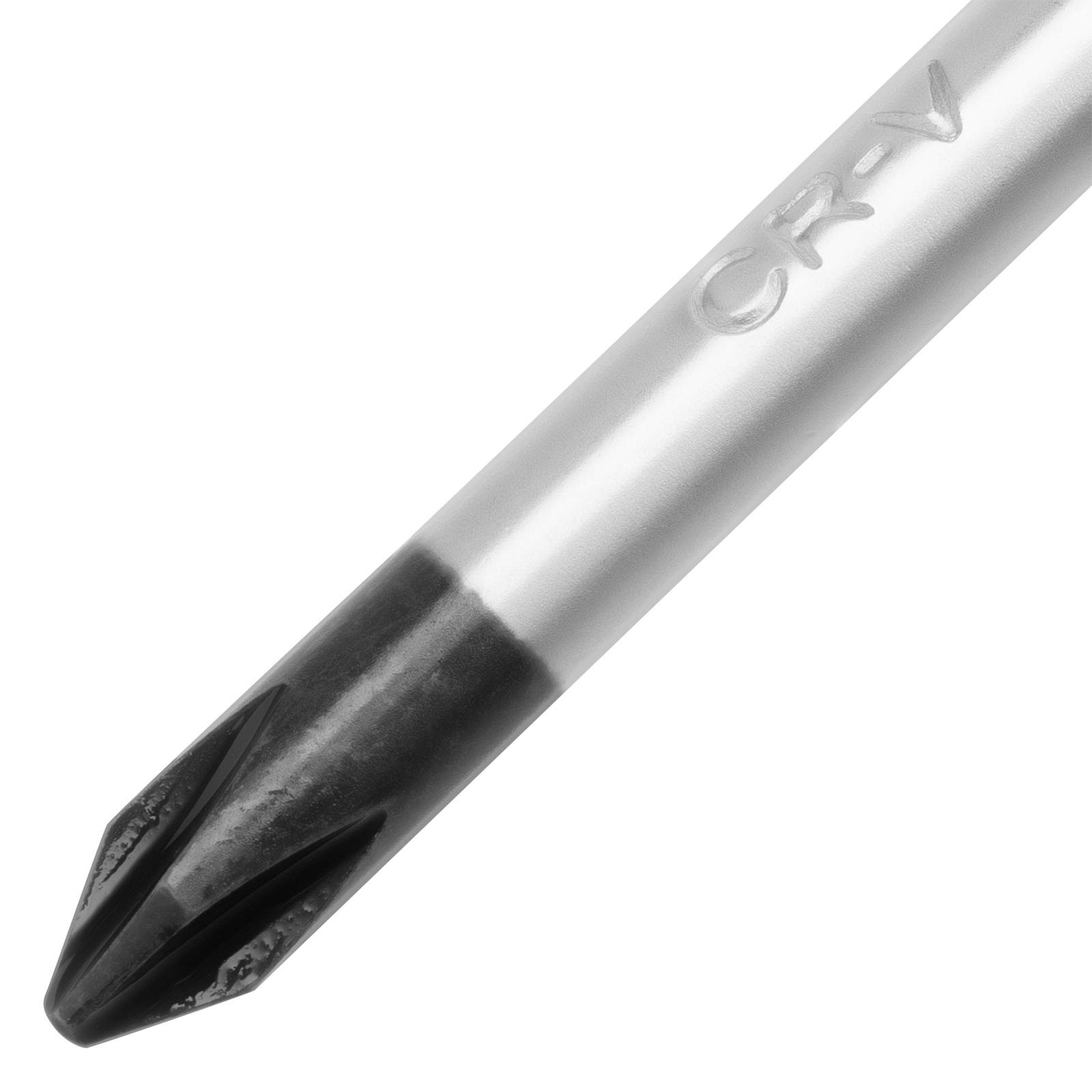 - Стержень и жало выполнены из износостойкой легированной стали CrV твердостью 50-52 HRC, что обеспечивает долгий срок службы отвертки.