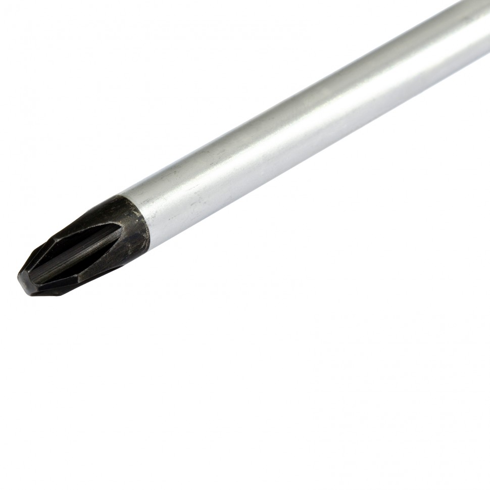 - Стержень и жало выполнены из износостойкой легированной стали CrV твердостью 50-52 HRC, что обеспечивает долгий срок службы отвертки.