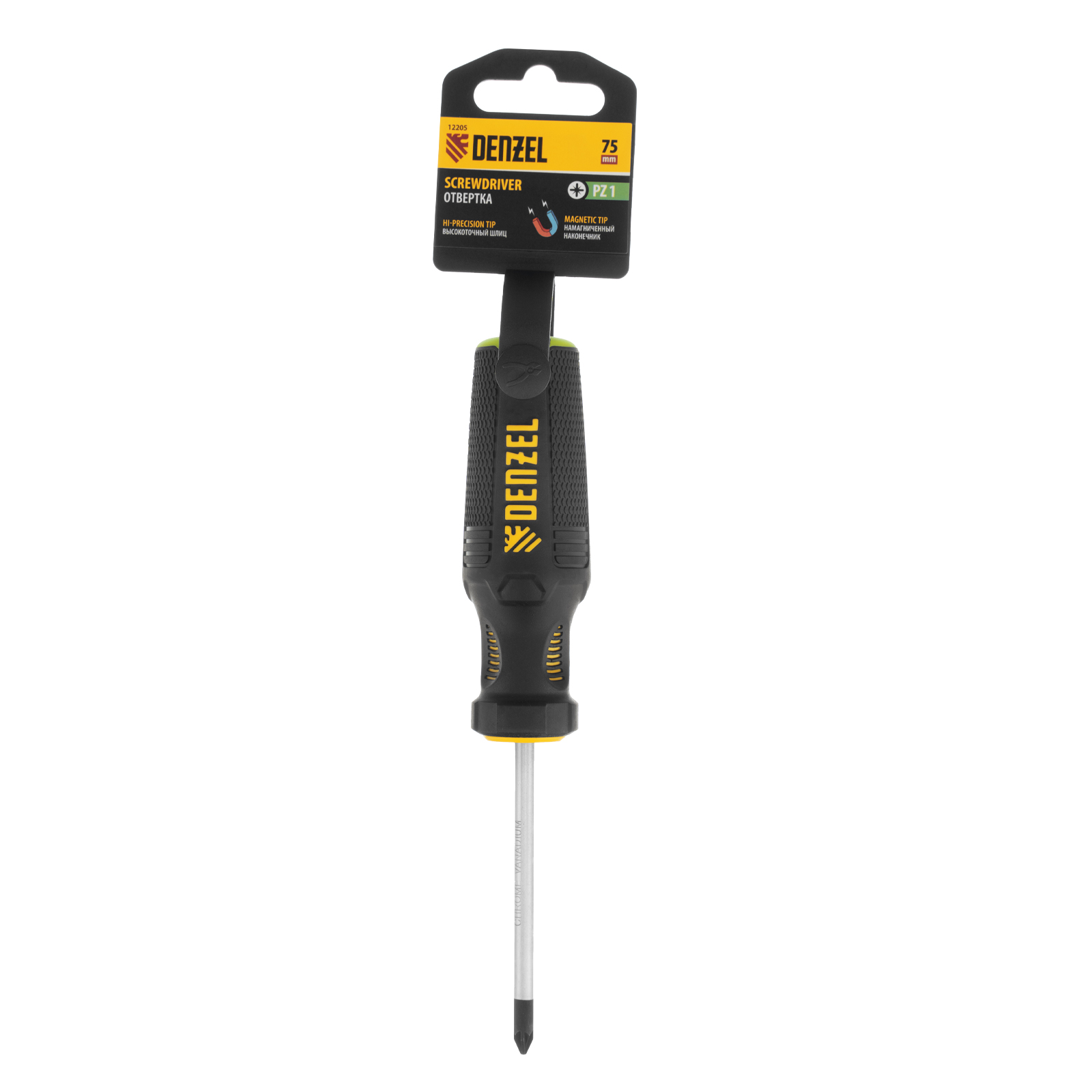Отвертка PZ1x75 мм, CrV, трехкомпонентная рукоятка Denzel