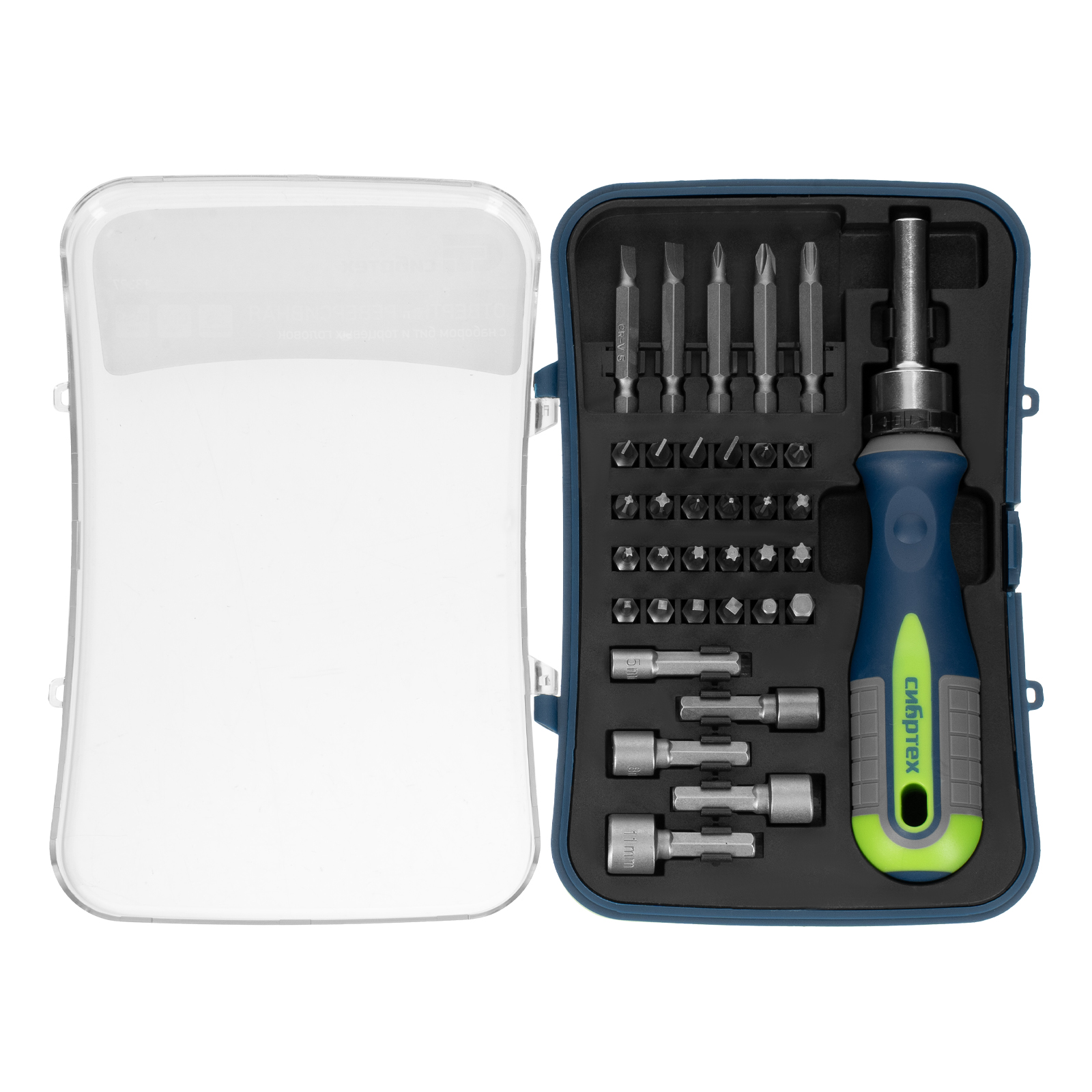 Отвертка реверсивная с набором бит и торцевыми головками, 35 шт, CrV Сибртех в Москве