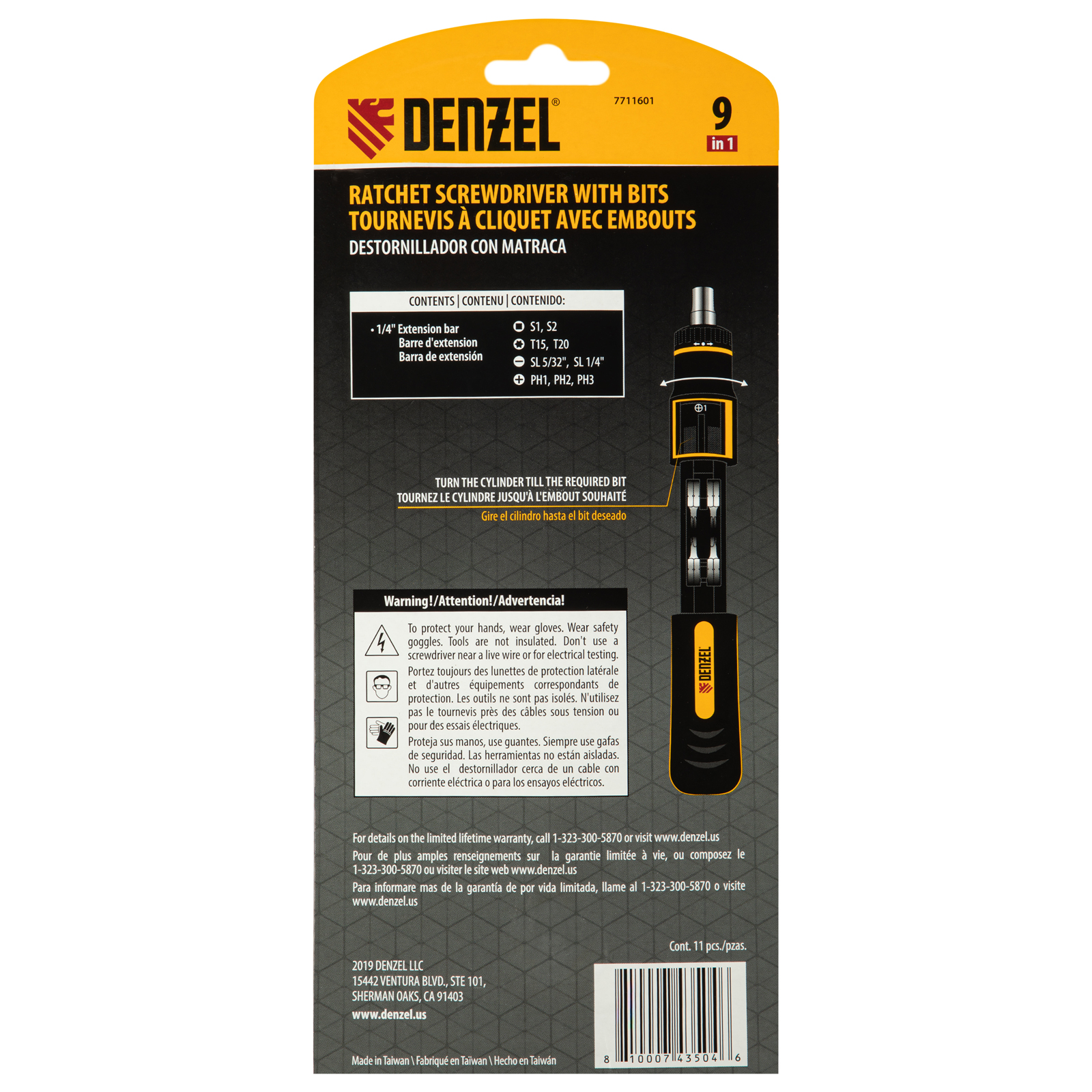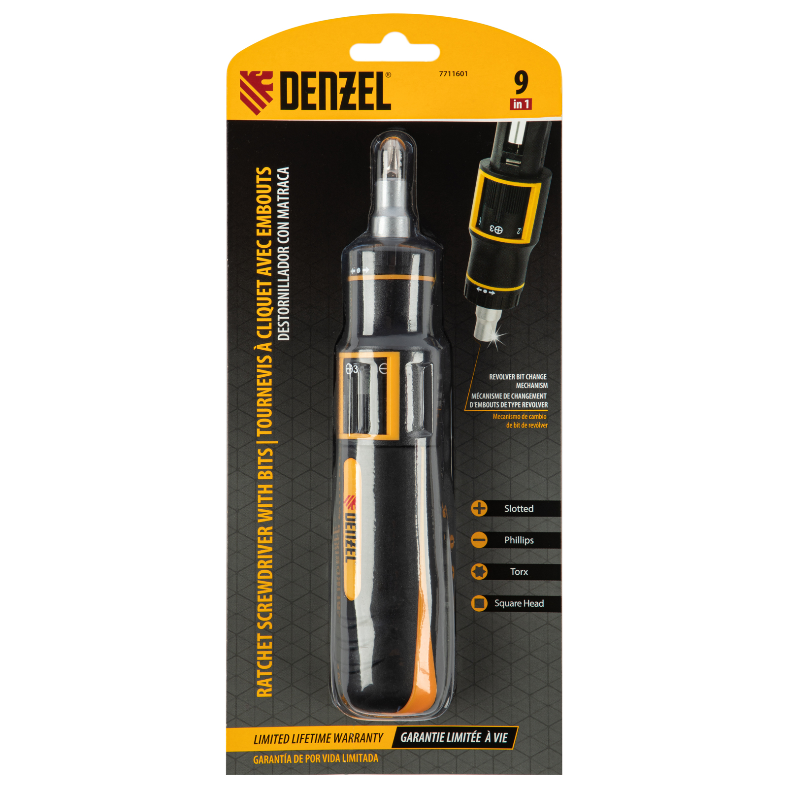 Отвертка реверсивная с револьверным механизмом, 11 шт, сталь S2 Denzel в Москве