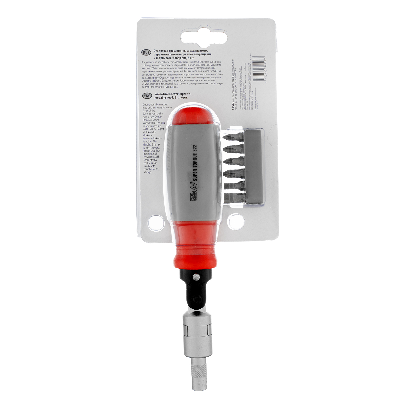 Отвертка реверсивная, поворотная головка, набор бит, CrV, 6 шт Matrix в Москве