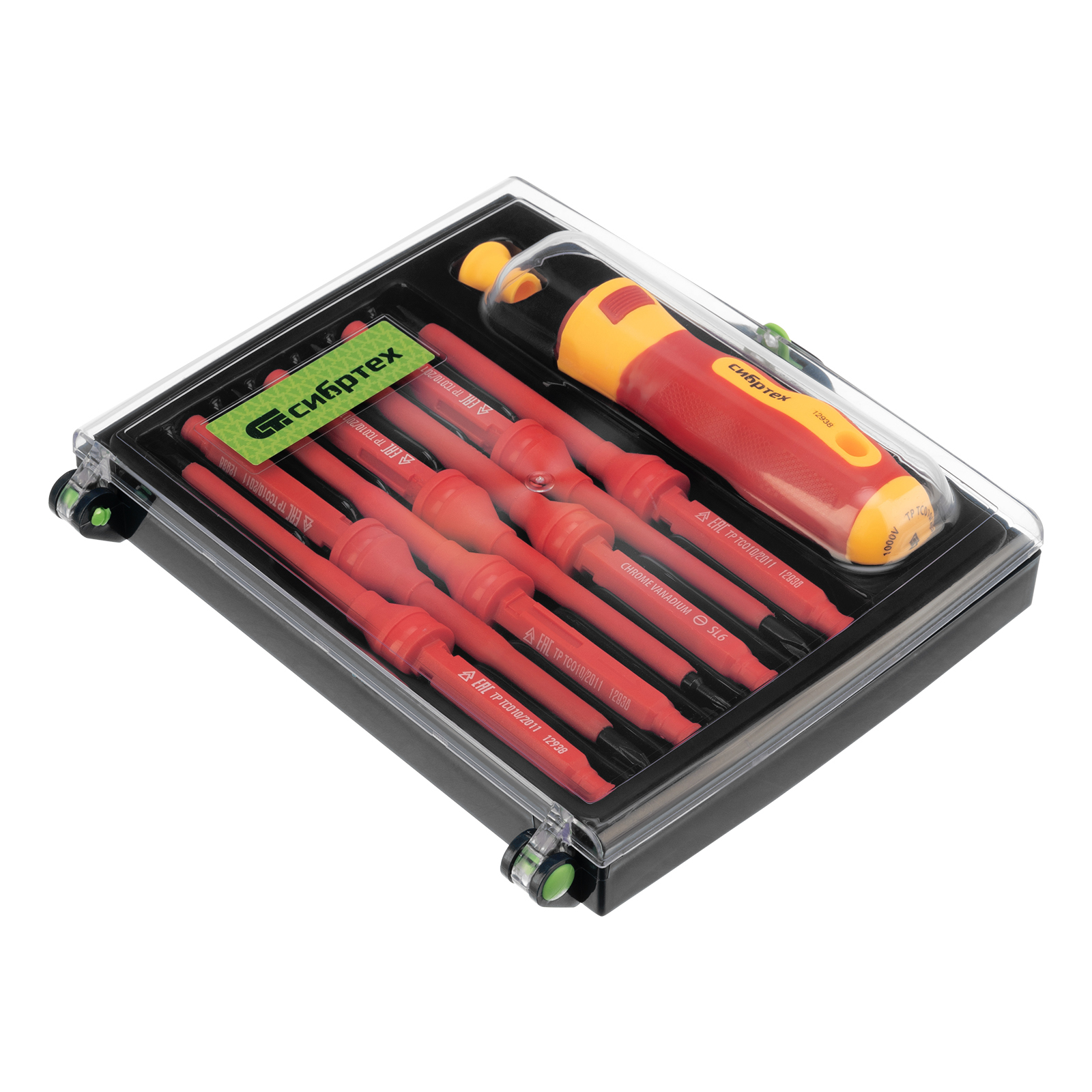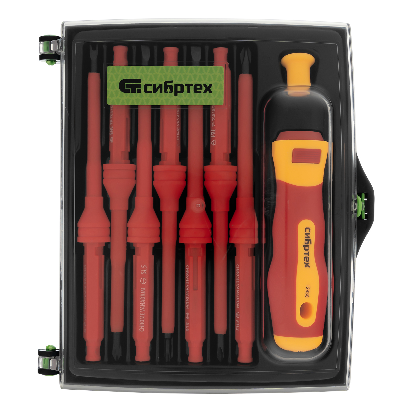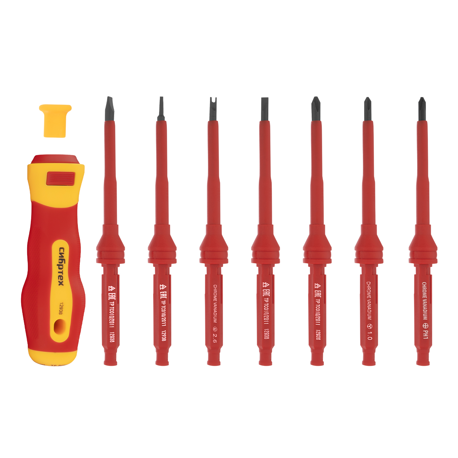 Отвертка со сменными жалами, диэлектрическая до 1000 В, 9 предметов, CrV Сибртех в Москве