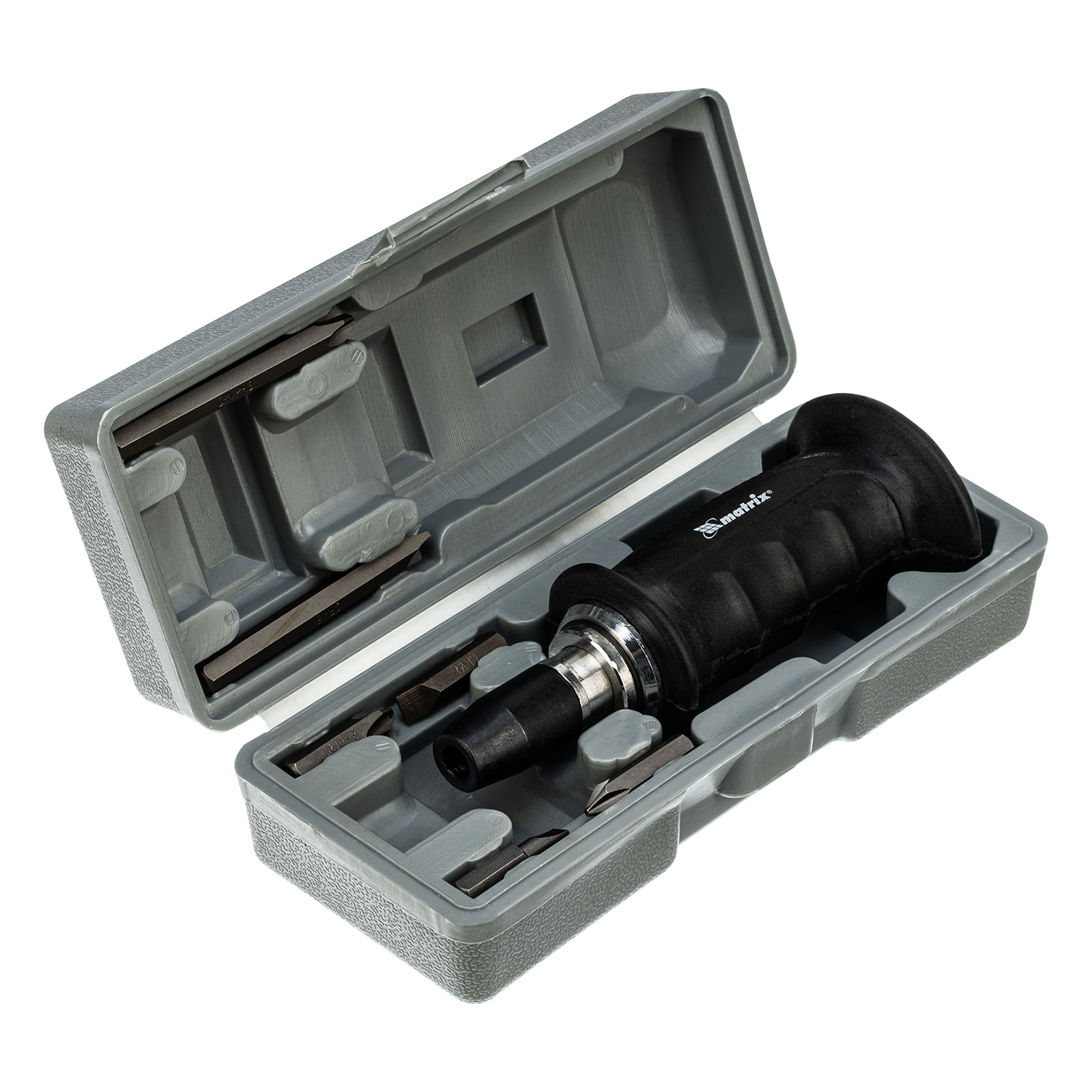 Отвертка ударно-поворотная 1/2, набор бит, 6 шт, черная ручка Профи, пластиковый бокс Matrix в Москве