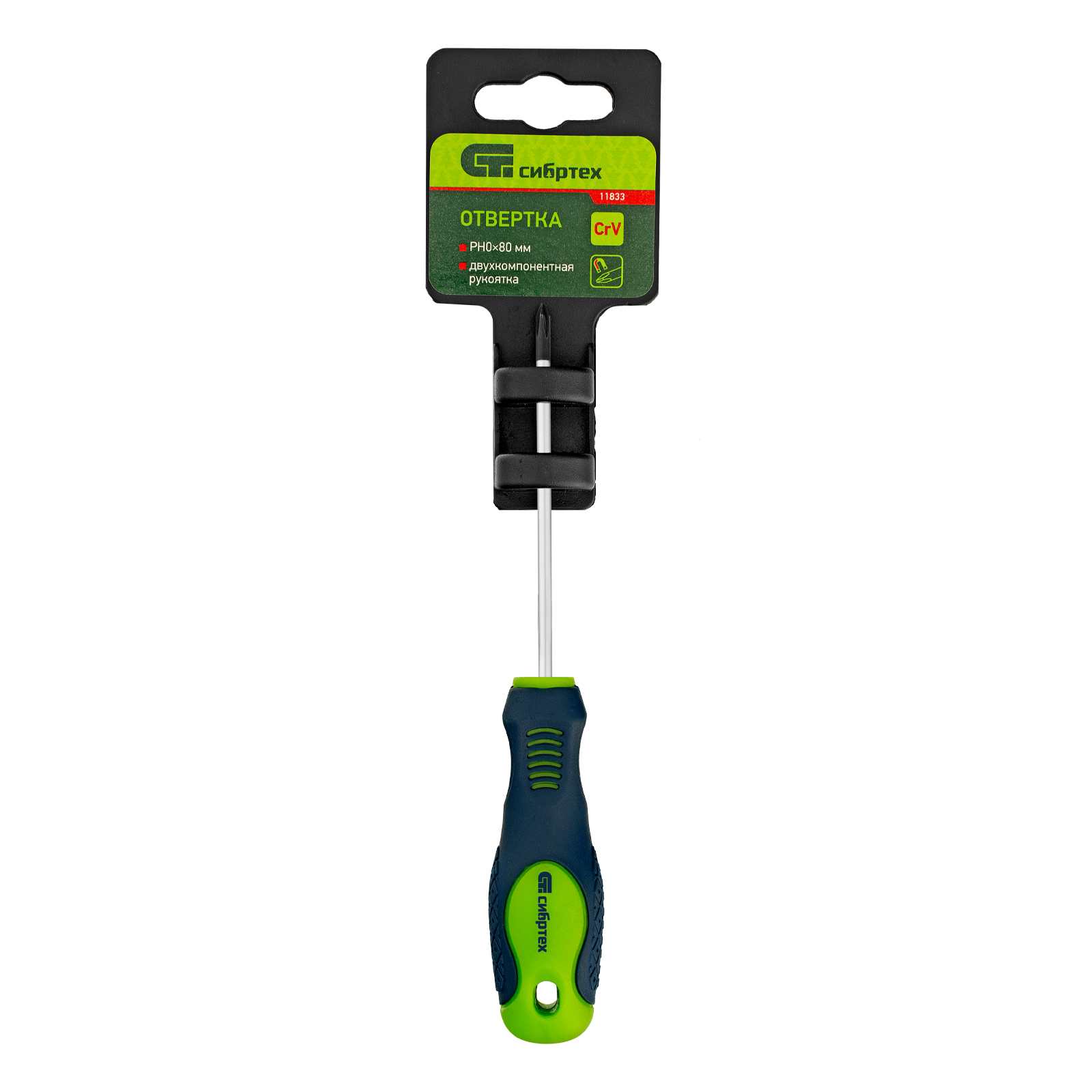 Отвертка, PH0 х 80 мм, CrV, двухкомпонентная рукоятка Сибртех в Москве