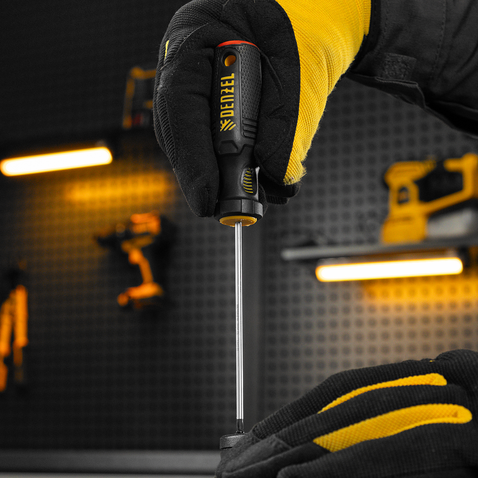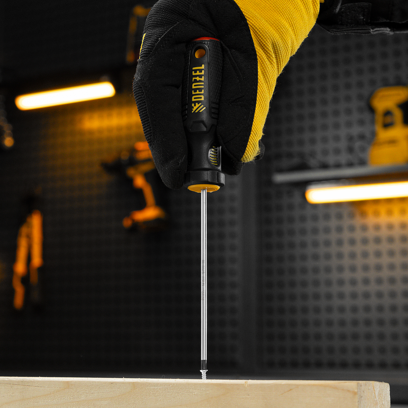 Отвертка Denzel 121727 с трехкомпонентной рукояткой, со стержнем из стали S2, длиной 100 мм, предназначена для закручивания и откручивания резьбового крепежа типа PH0. Высокоточный намагниченный шлиц избавляет мастера от необходимости придерживать винт или саморез рукой. Отвертка рекомендована для профессионального использования.