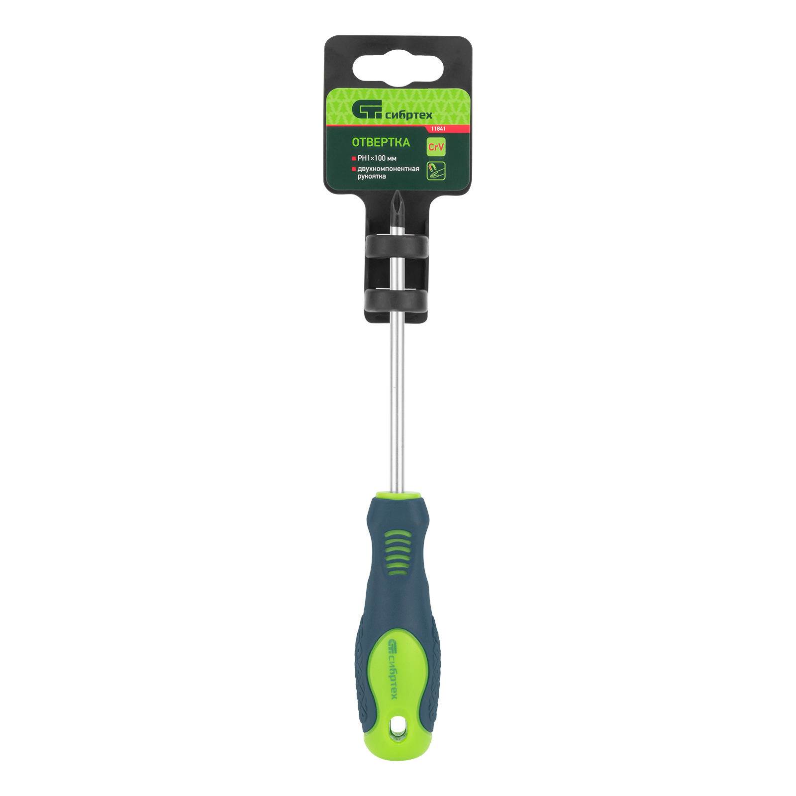 Отвертка, PH1 х 100 мм, CrV, двухкомпонентная рукоятка Сибртех в Москве