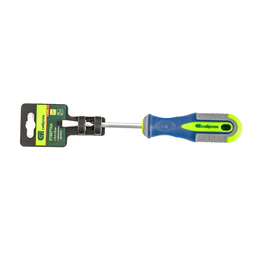 Отвертка, SL6 х 100 мм, CrV, трехкомпонентная рукоятка Сибртех