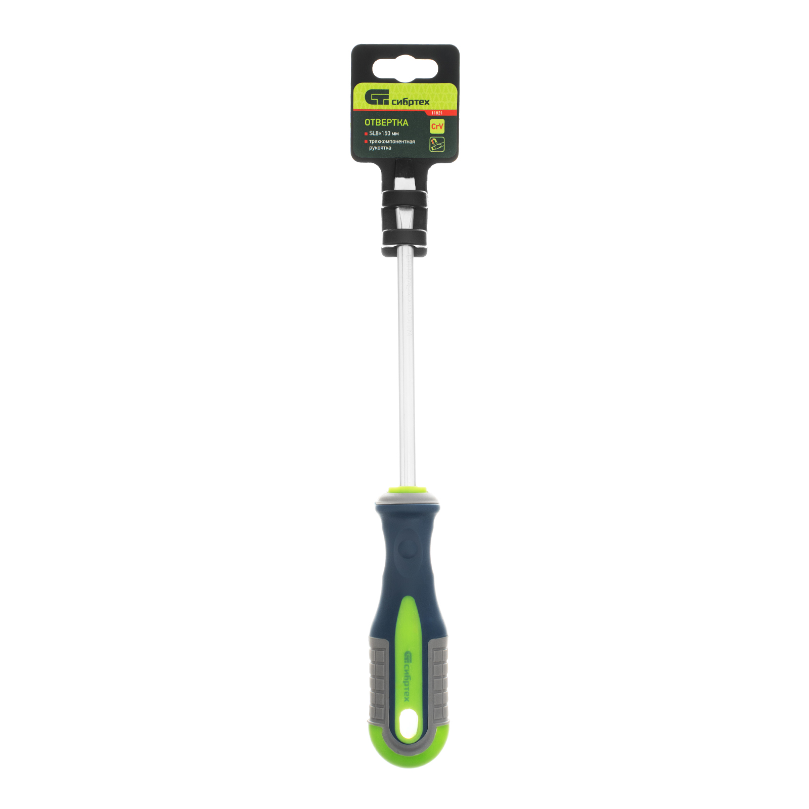 Отвертка, SL8 х 150 мм, CrV, трехкомпонентная рукоятка Сибртех в Москве