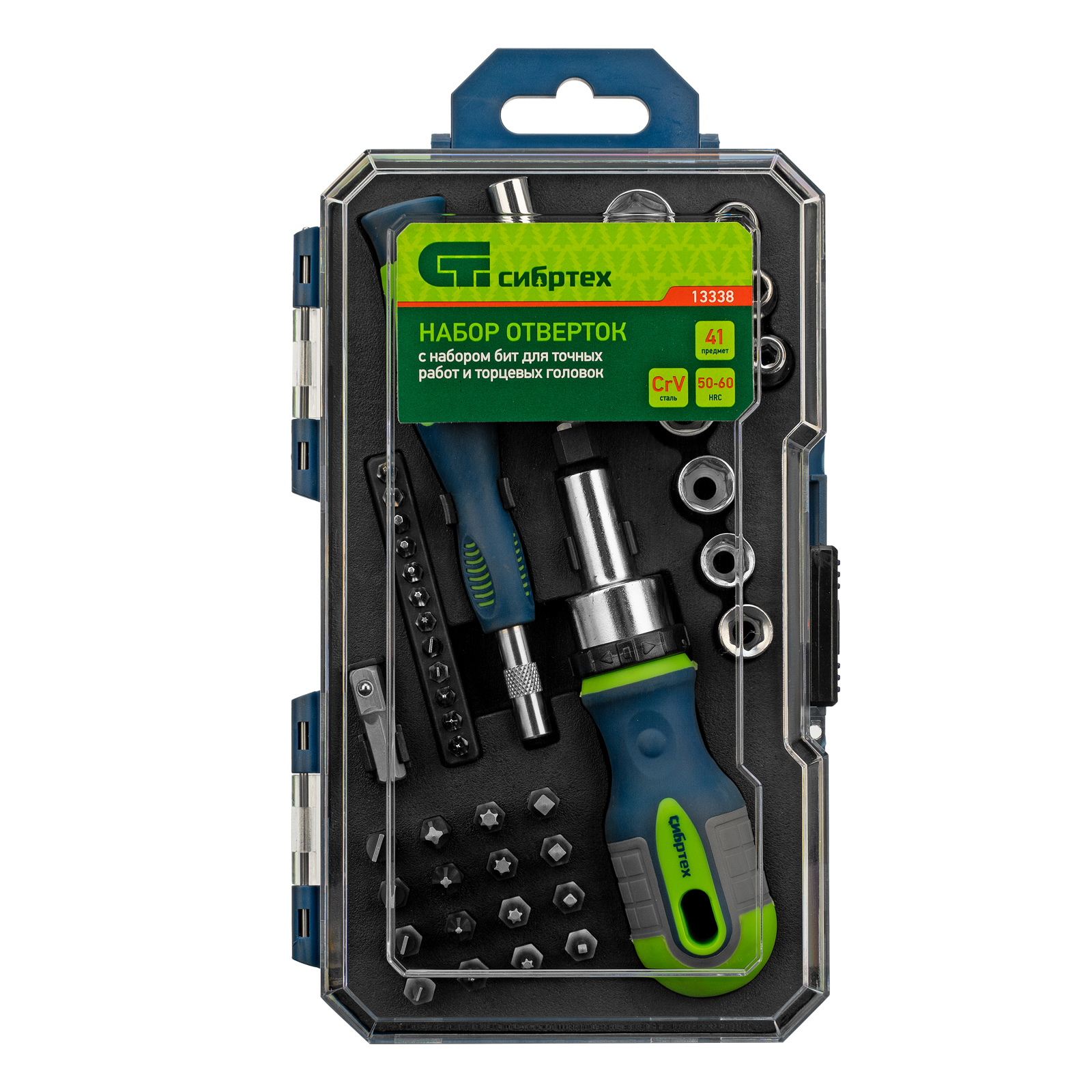 Реверсивные отвертки с набором бит и торцевых головок Сибртех 13338 — комплект из 41 предмета из стали CrV, включающий насадки для работы с крепежом типа SL, PH, PZ, HEX, TORX, а также для монтажа/демонтажа гаек, болтов, саморезов с внешним шестигранником. Отвертка и биты для точных работ позволяют отремонтировать мелкую электронику, очки, детские игрушки и т.д. Удлинитель облегчает работу в труднодоступных местах.