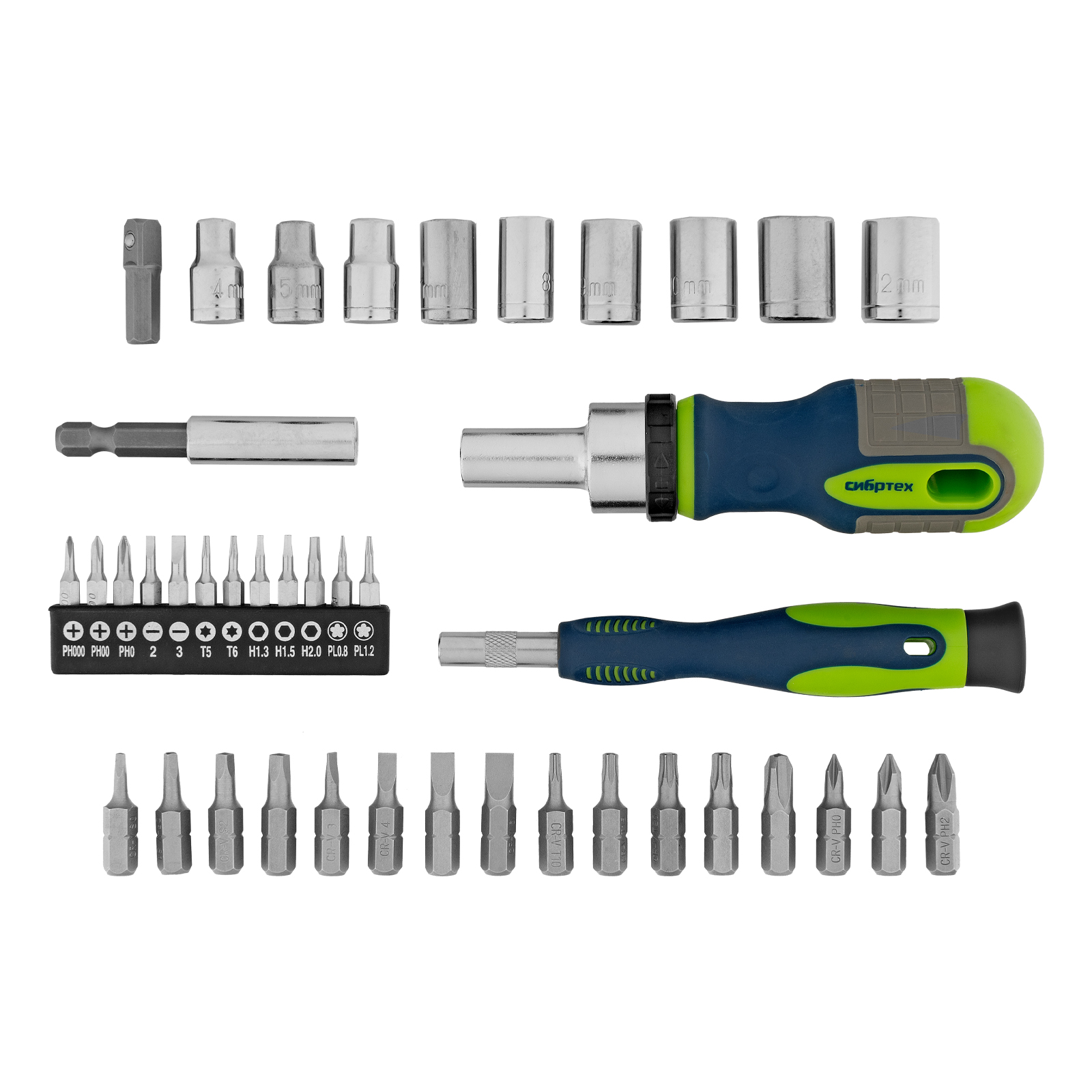 Отвертки реверсивные с набором бит и торцевыми головками, 41 шт, CrV Сибртех в Москве