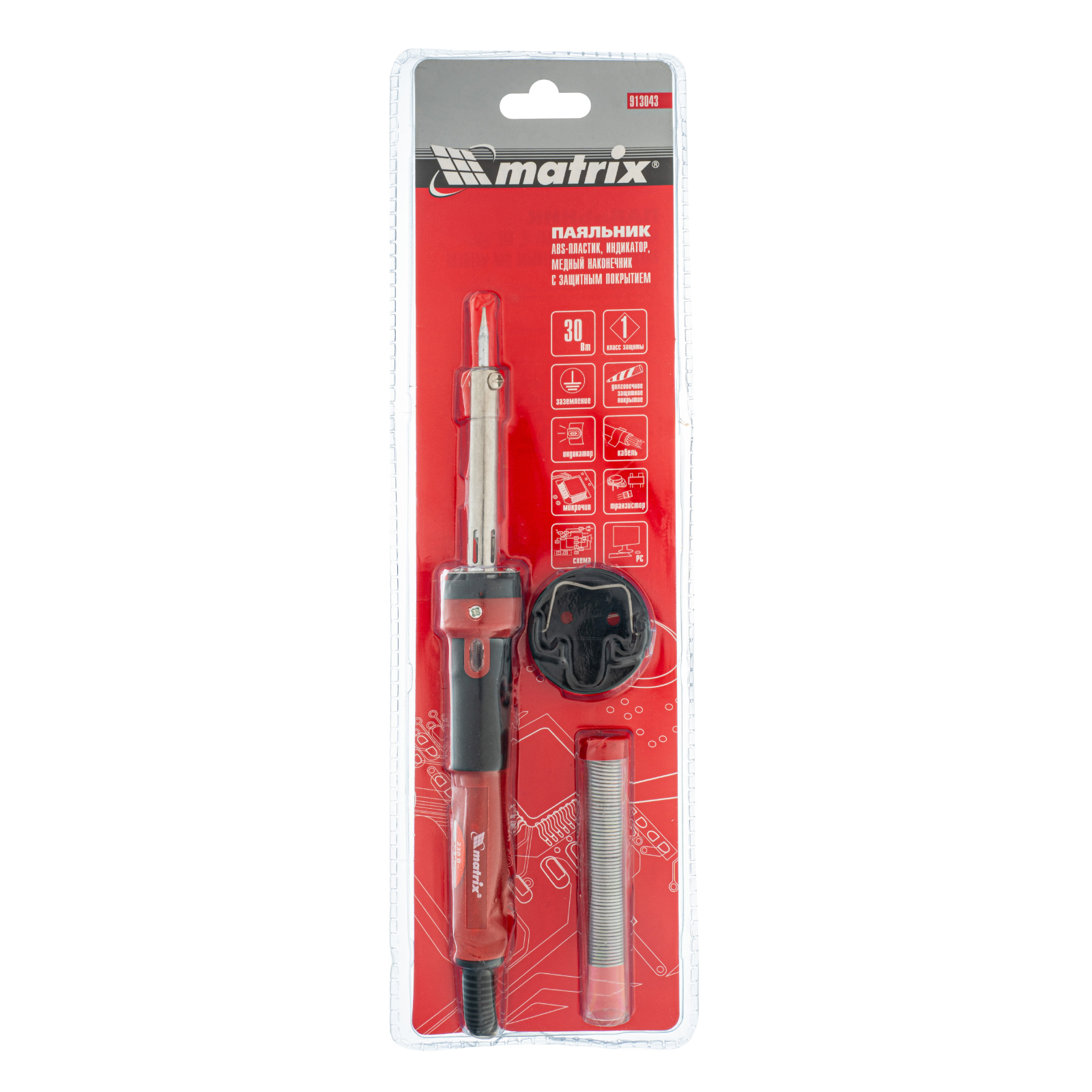 Паяльник, пластик ABS, класс защиты 1, индикатор, медный наконечник с долговечным покрытием, 220 В, 30 W Matrix в Москве